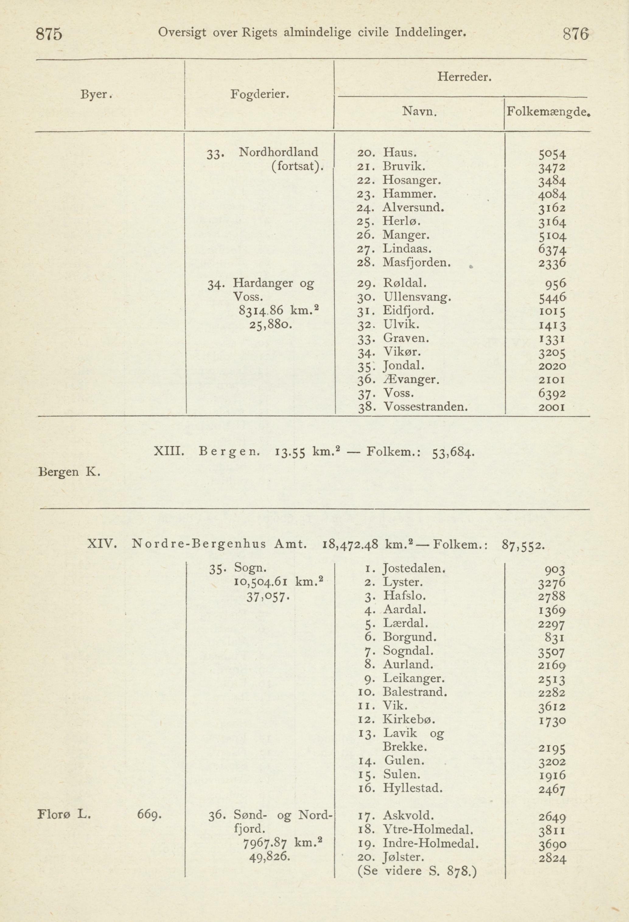 875 Oversigt over Rigets almindelige civile Inddelinger.