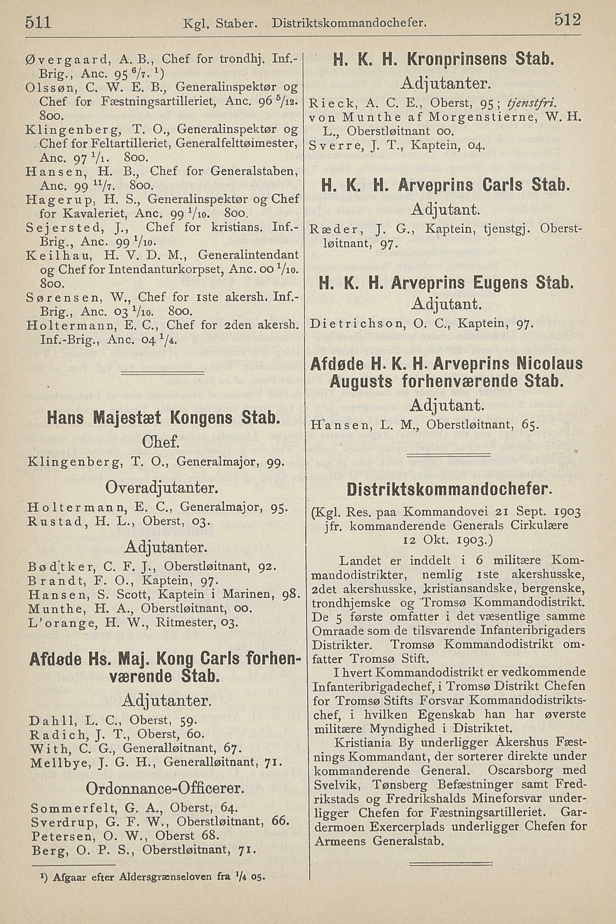 511 Kgl. Staber. Distriktskommandochefer. 512