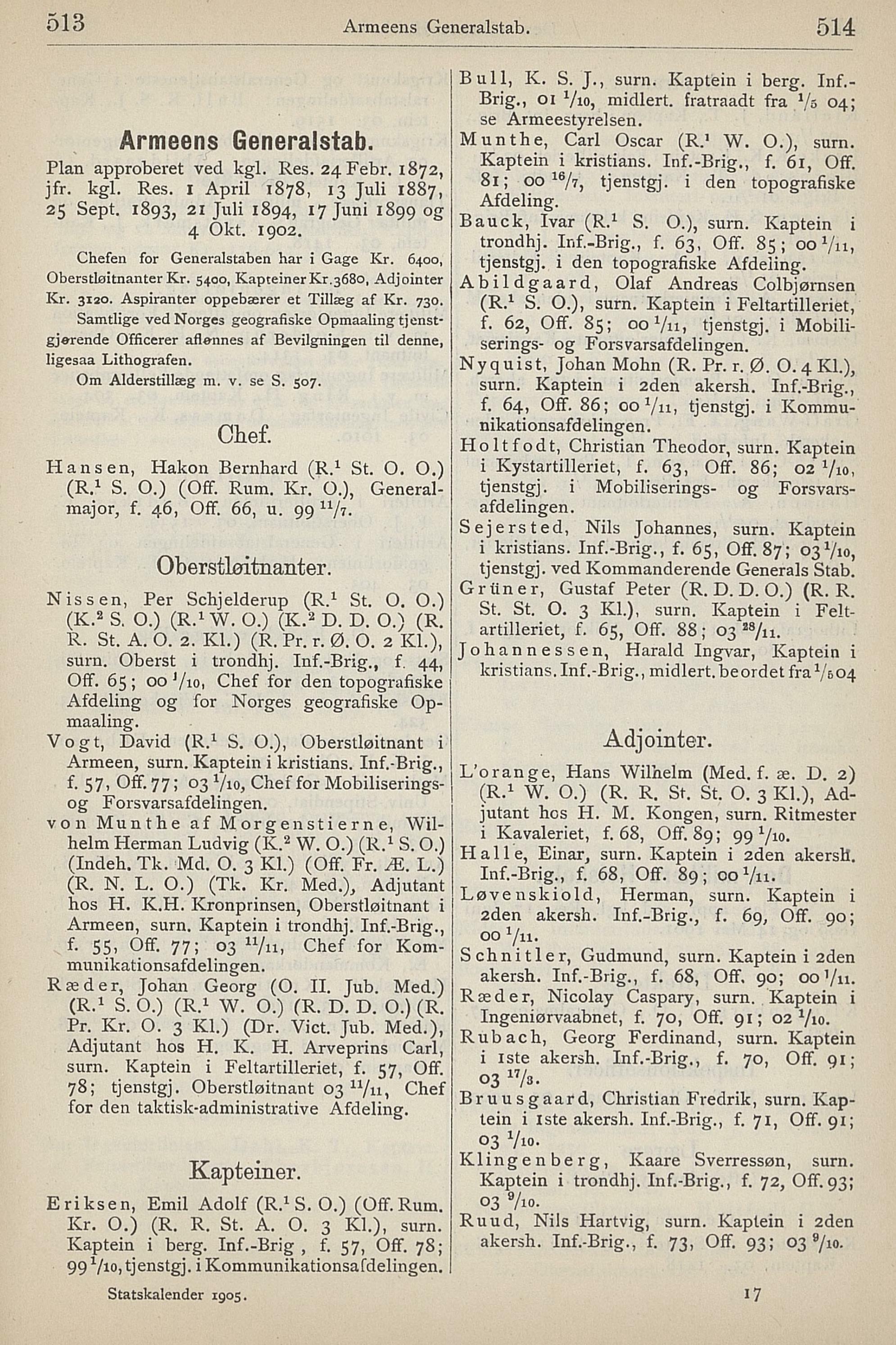 Oberstløitnanter Kr. 5400, KapteinerKr.368o, Adjointer