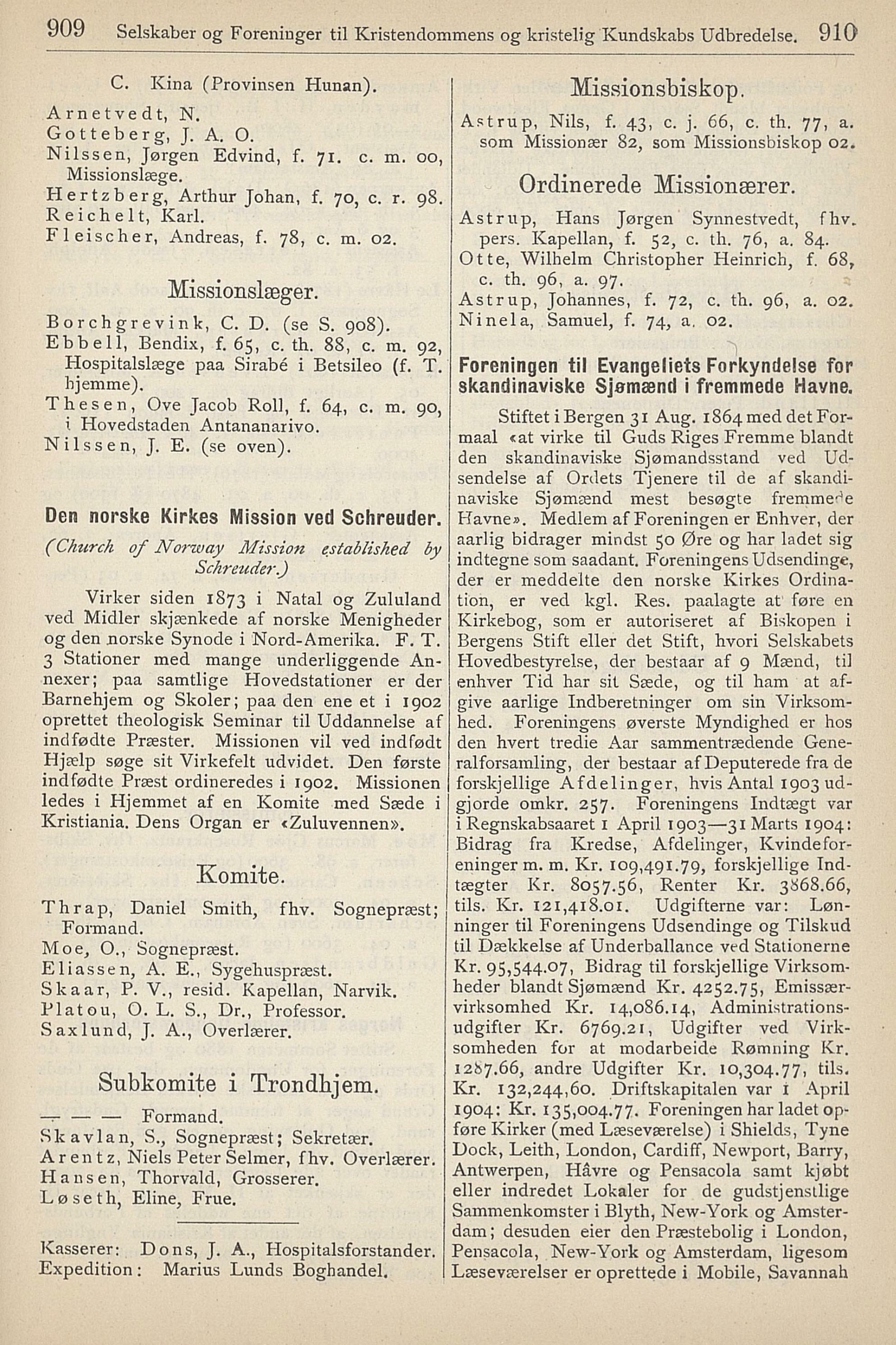 909 Selskaber og Foreninger til Kristendommens og kristelig Kundskabs Udbredelse. 910