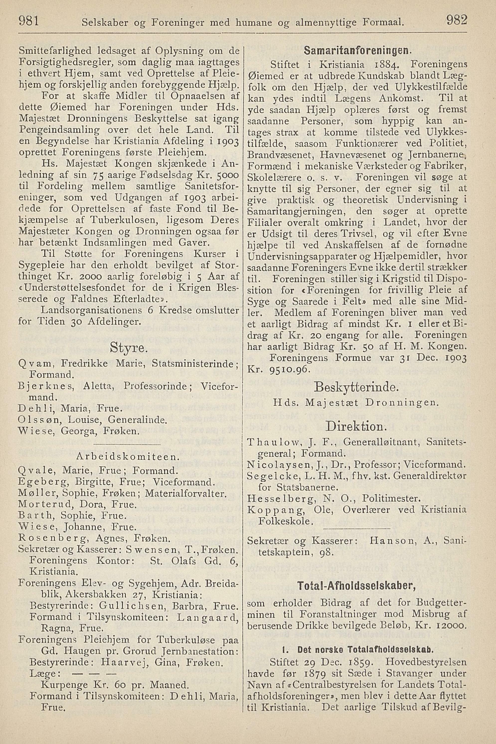 981 Selskaber og Foreninger med humane og almennyttige Formaal. 982