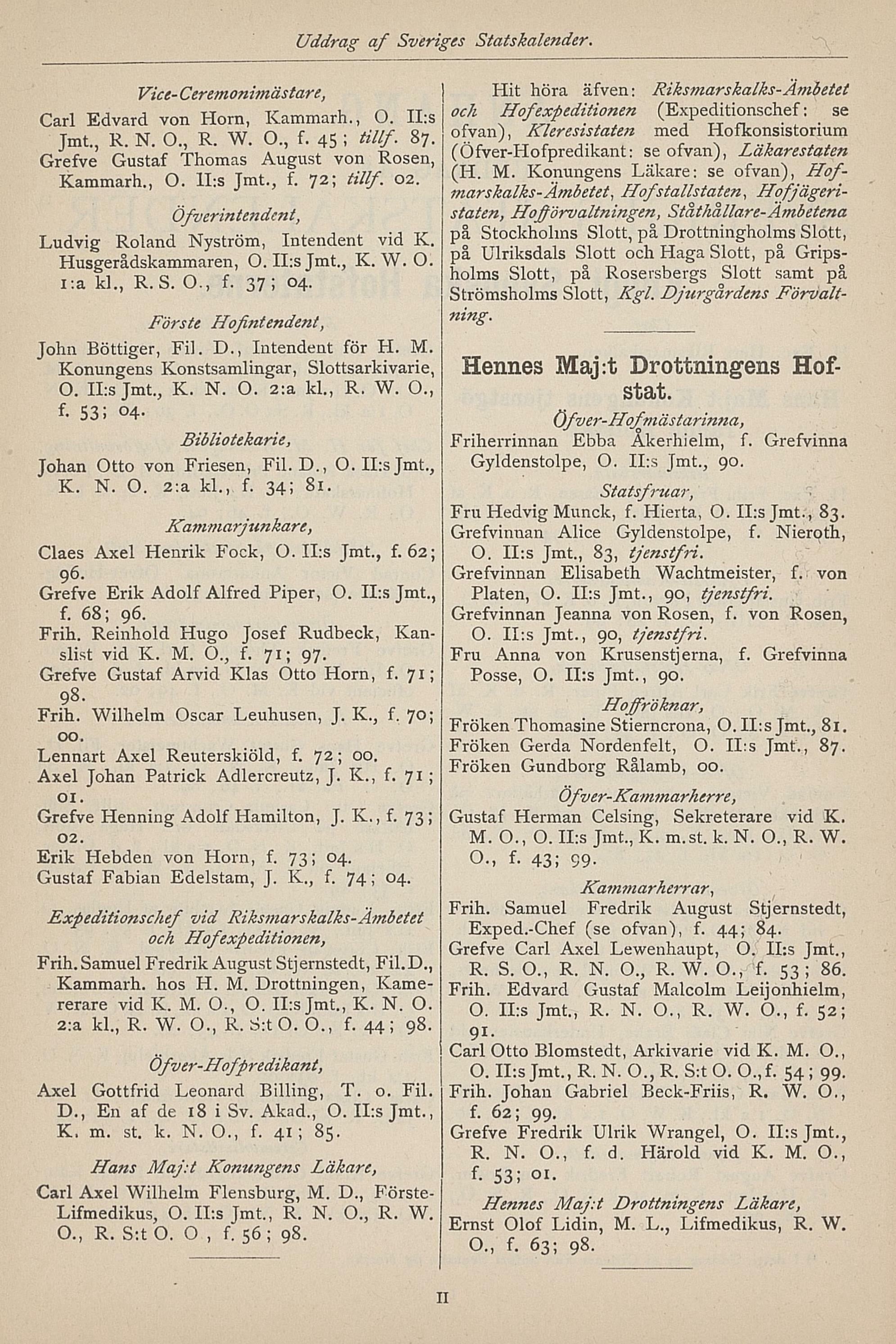 Full resolution (JPEG) - On this page / på denna sida - Anhang: Uddrag af Sveriges Statskalender - Kungl. Svenska Hofstaterna