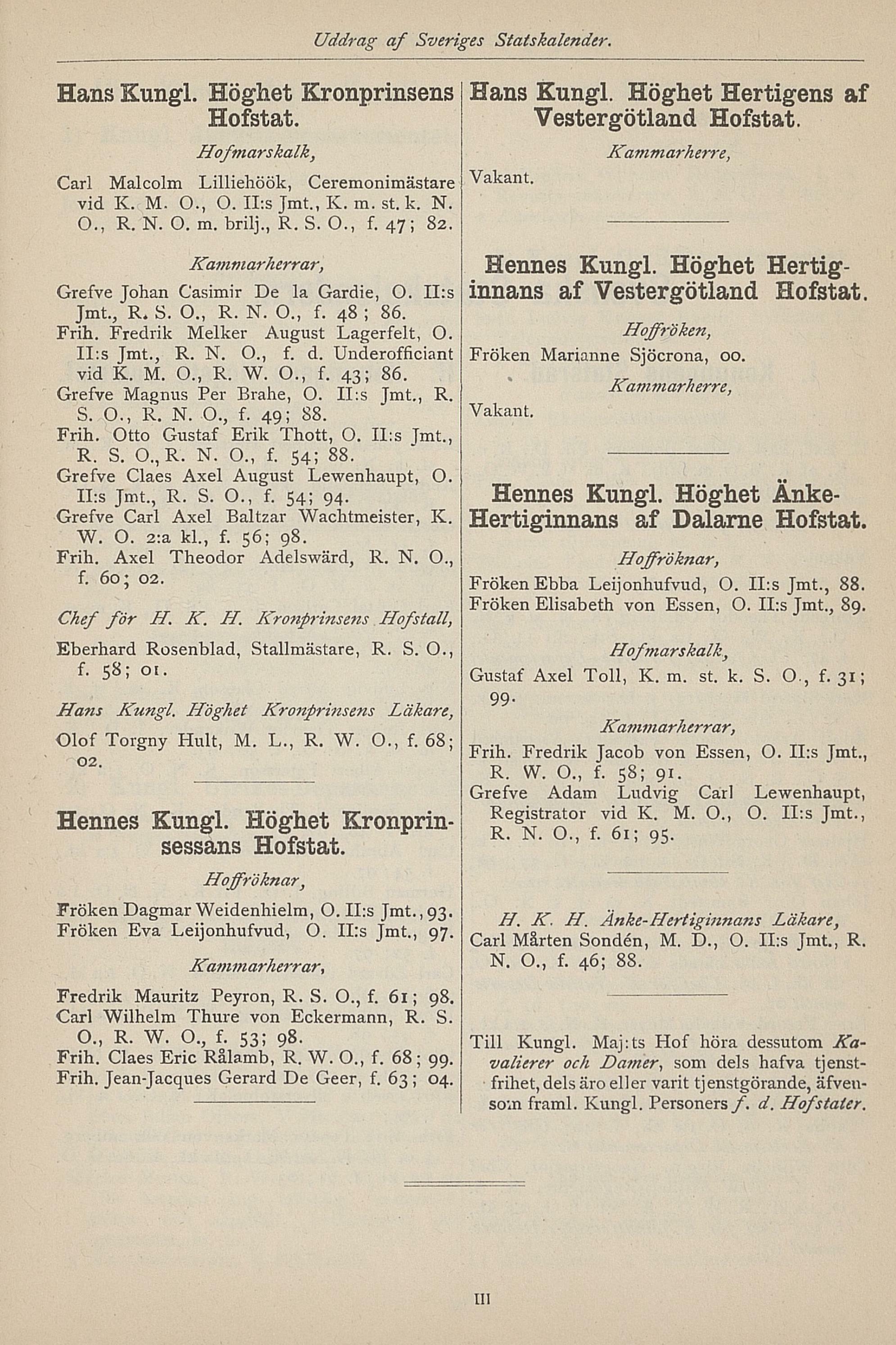 Full resolution (JPEG) - On this page / på denna sida - Anhang: Uddrag af Sveriges Statskalender - Kungl. Svenska Hofstaterna