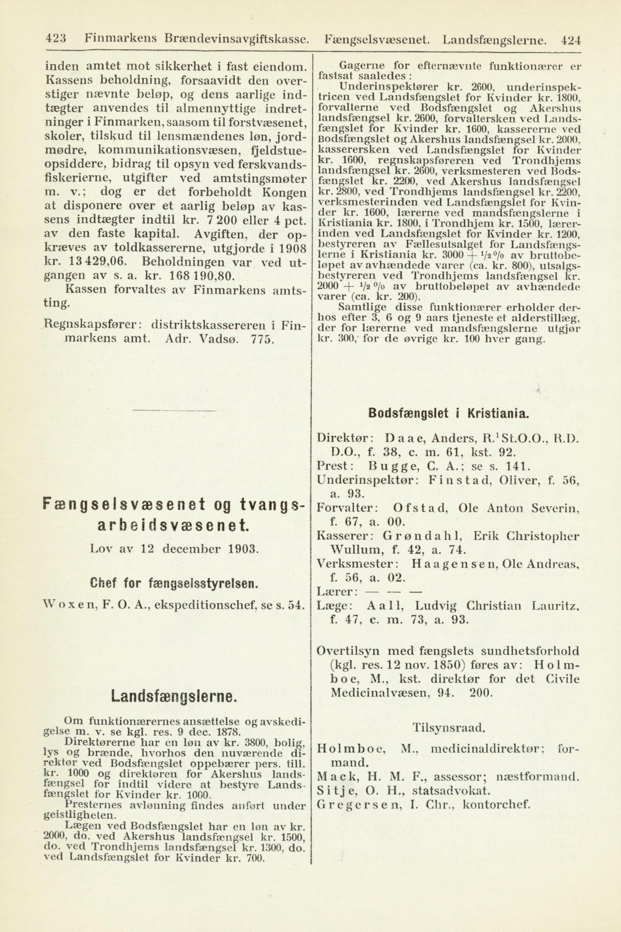 Finmarkens Brændevinsavgiftskasse. Fængselsvæsenet. Landsfængslerne.