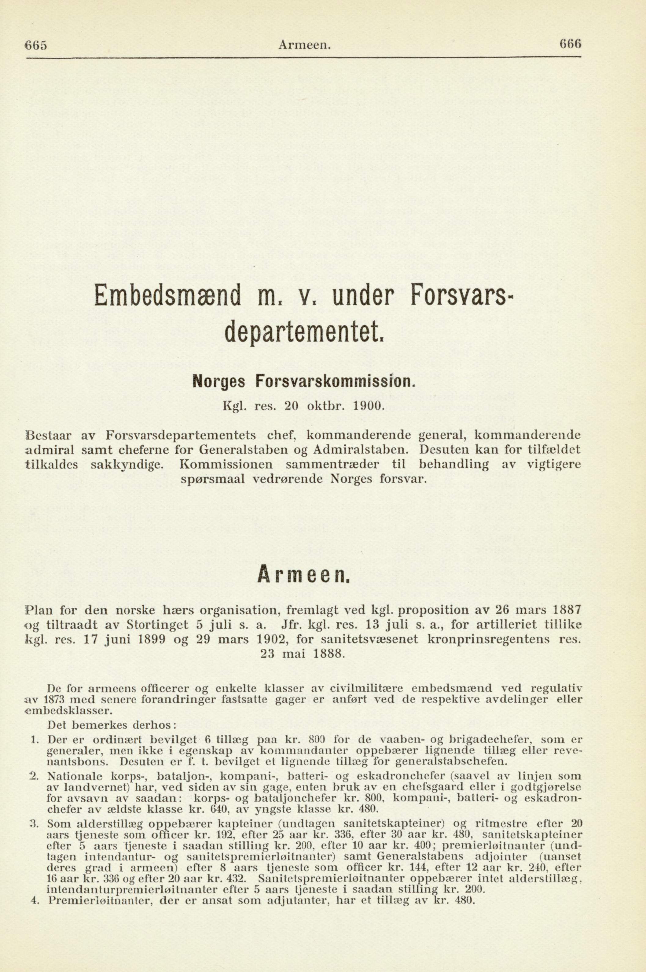 av 1873 med senere forandringer fastsatte gager er anført ved de respektive avdelinger eller