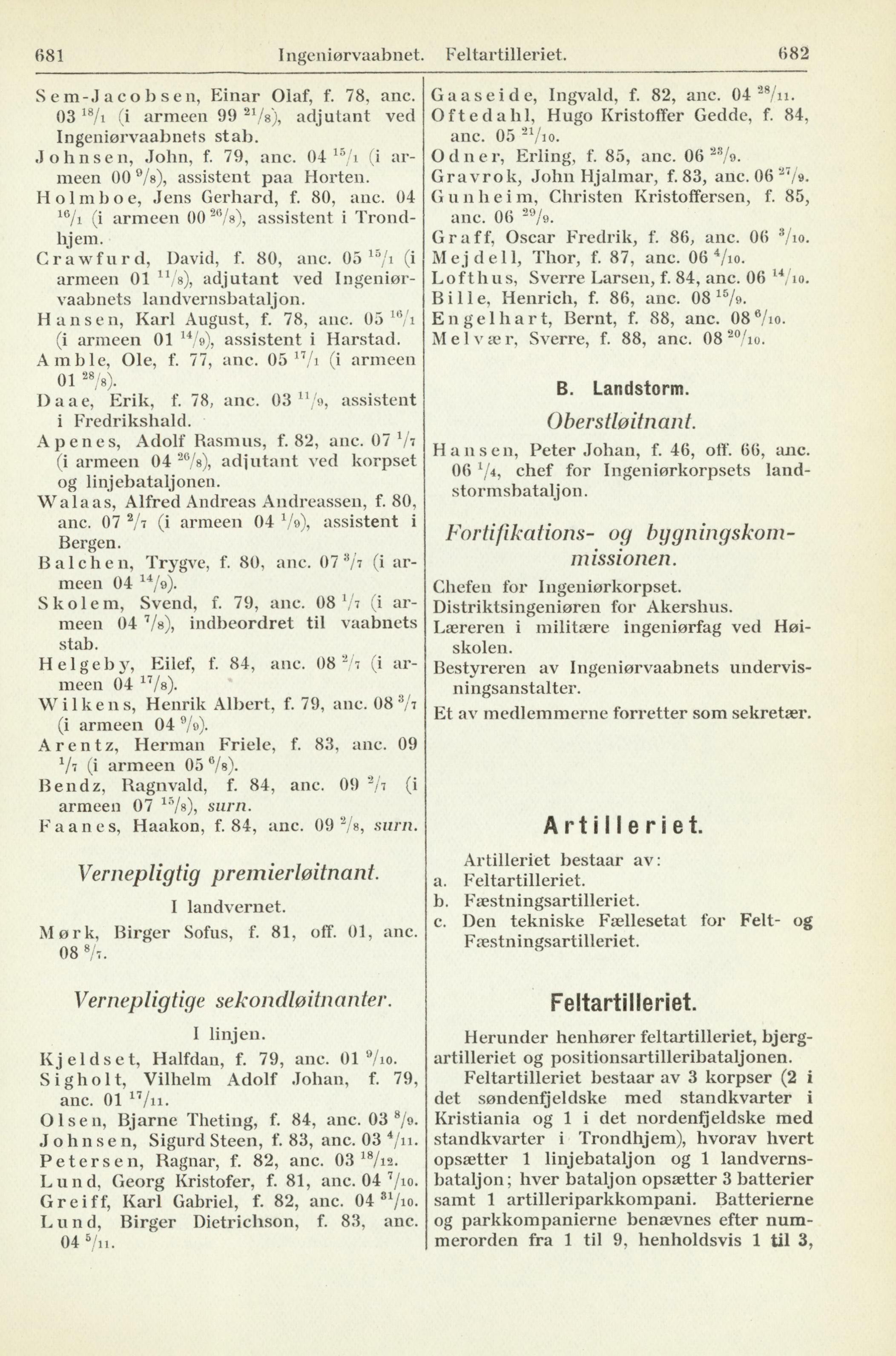 681 Ingeniørvaabnet. Feltartilleriet. 682