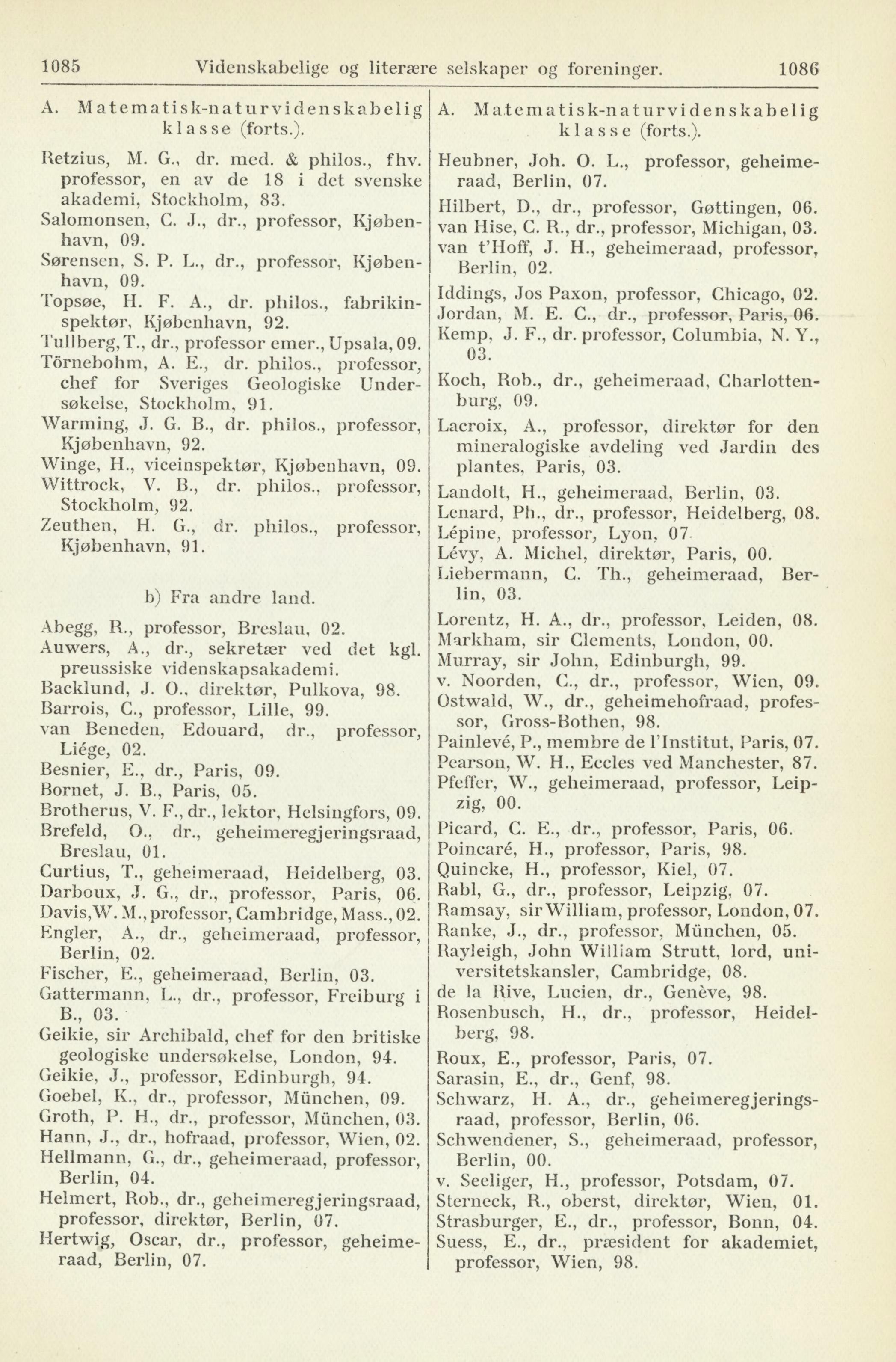 1085 Videnskabelige og literære selskaper og foreninger. 1086
