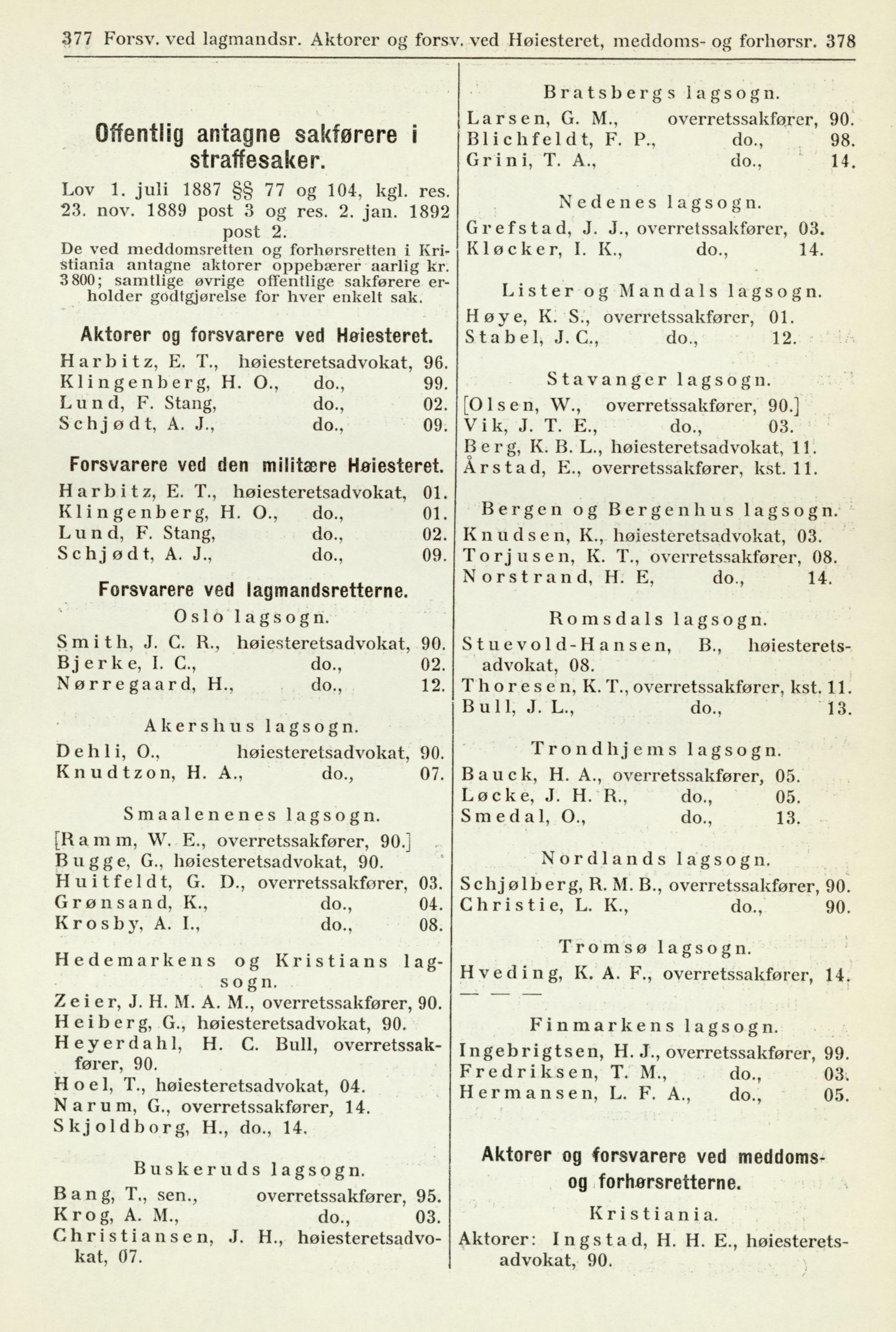 377 Forsv. ved lagmandsr. Aktorer og forsv. ved Høiesteret, meddoms- og forhørsr. 378