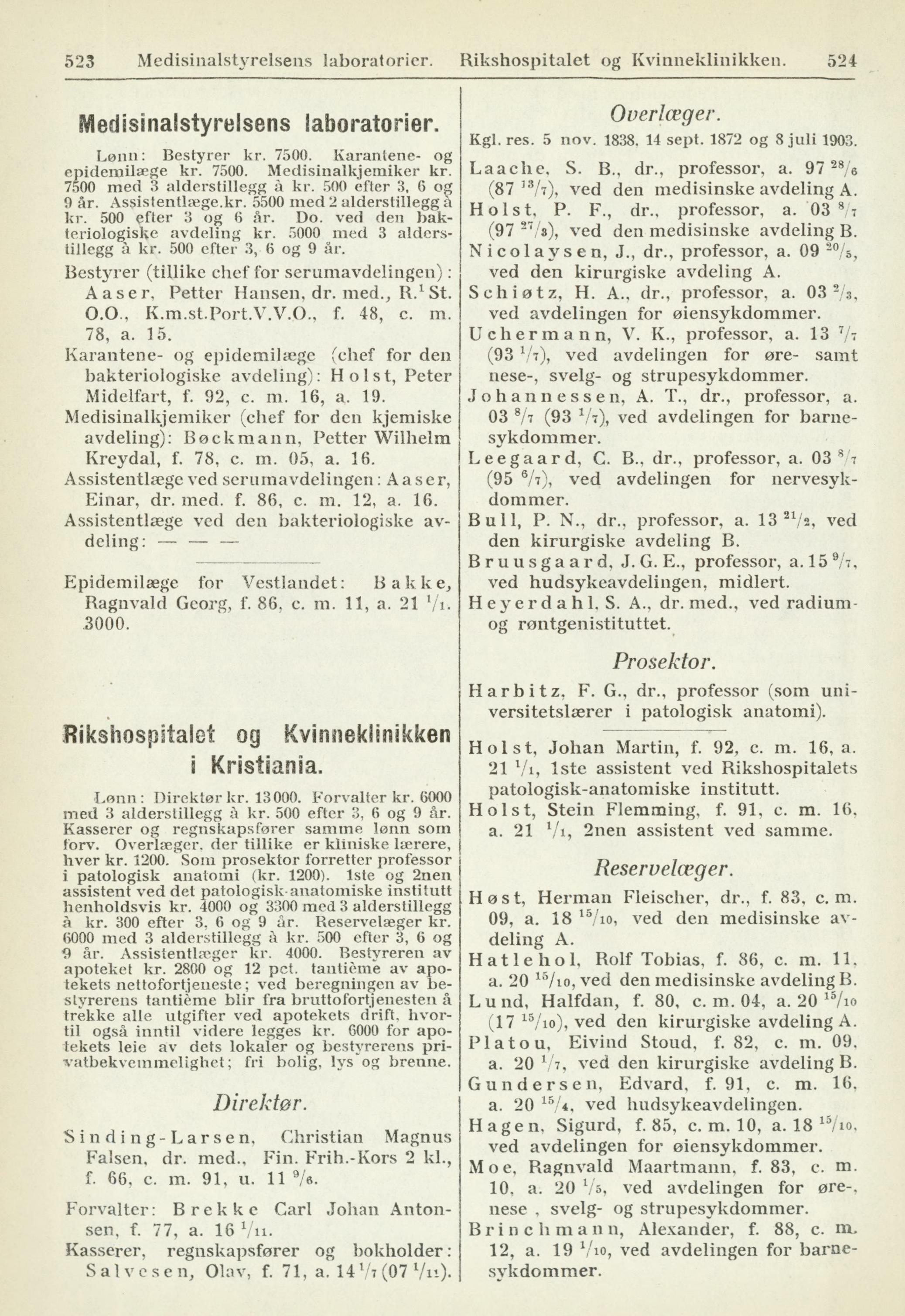 523 Medisinalstyrelsens laboratorier. Rikshospitalet og Kvinneklinikken. 524