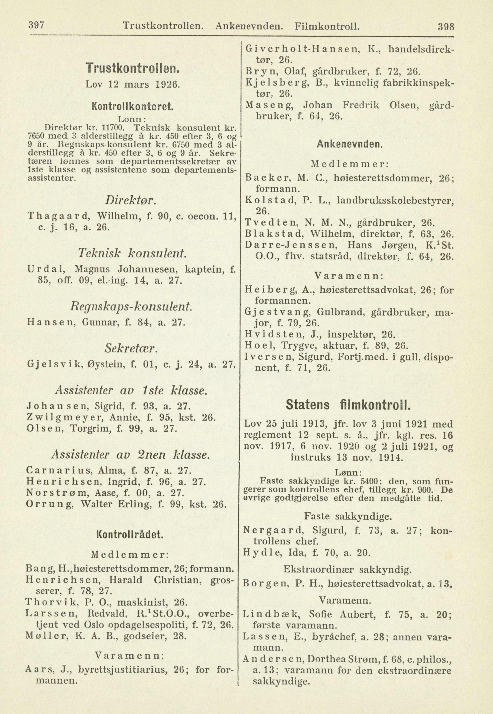 397 Trustkontrollen. Ankenevnden. Filmkontroll. 398