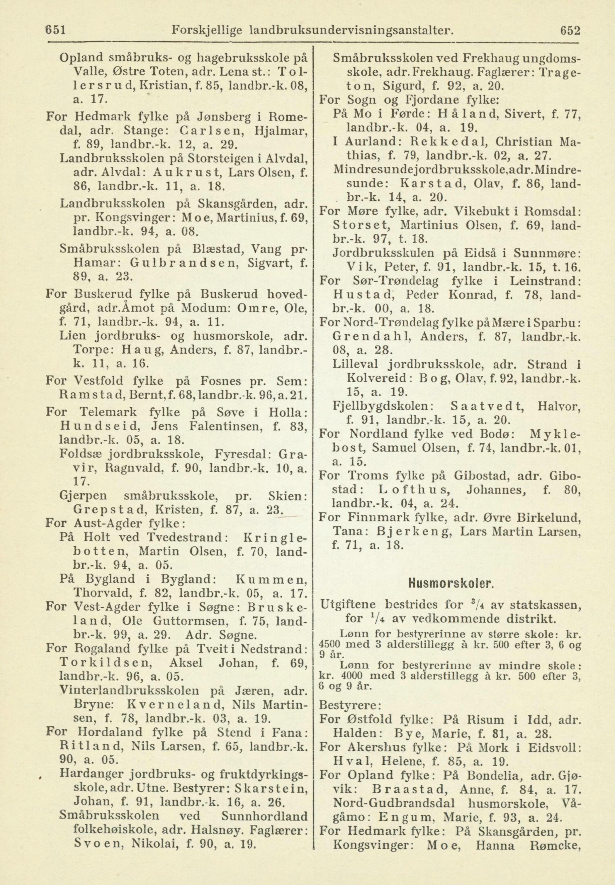 651 Forskjellige landbruksundervisningsanstalter. 652