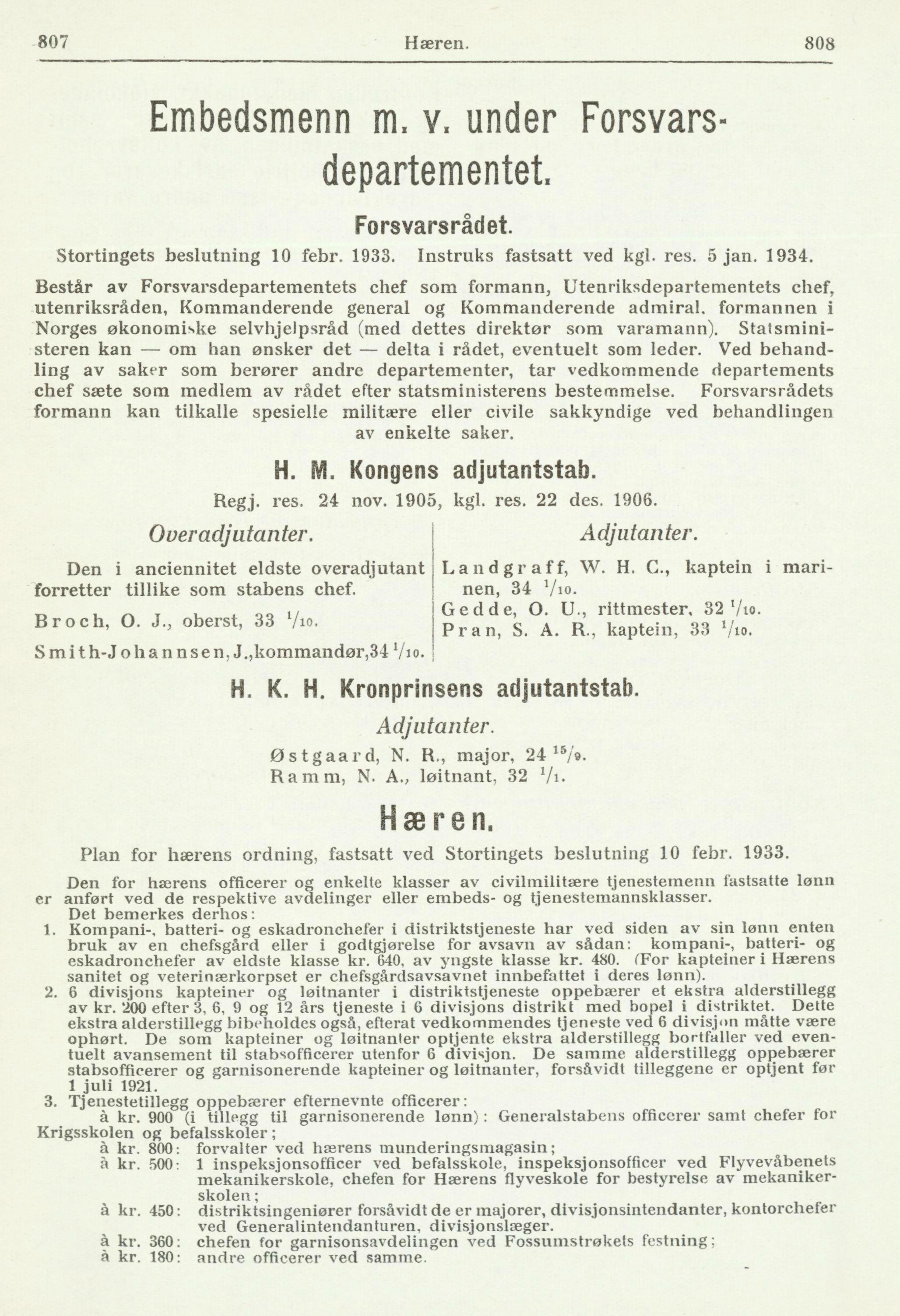 Den for hærens officerer og enkelte klasser av civilmilitære tjenestemenn fastsatte lønn