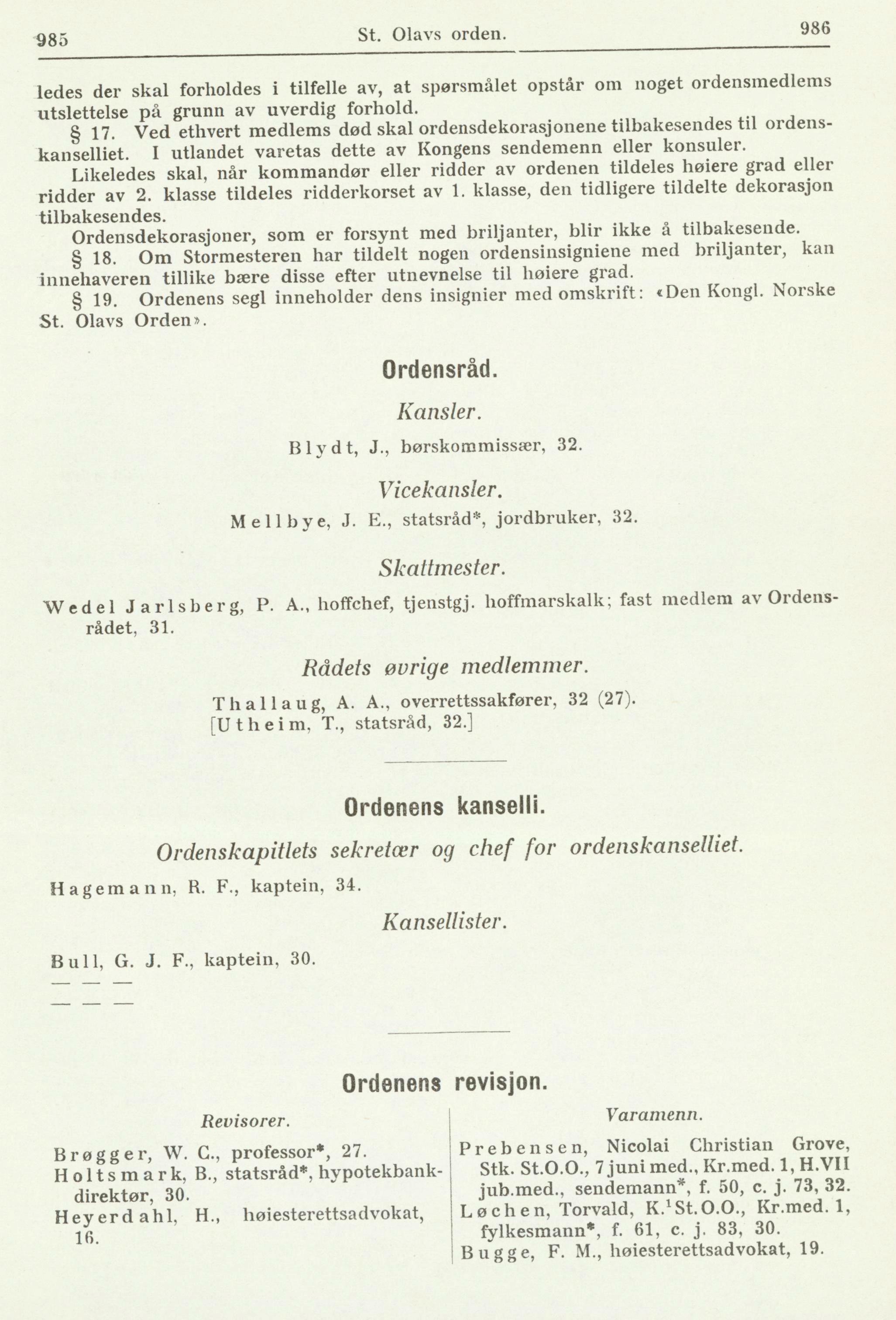 $ 19. Ordenens segl inneholder dens insignier med omskrift: «Den Kongl. Norske