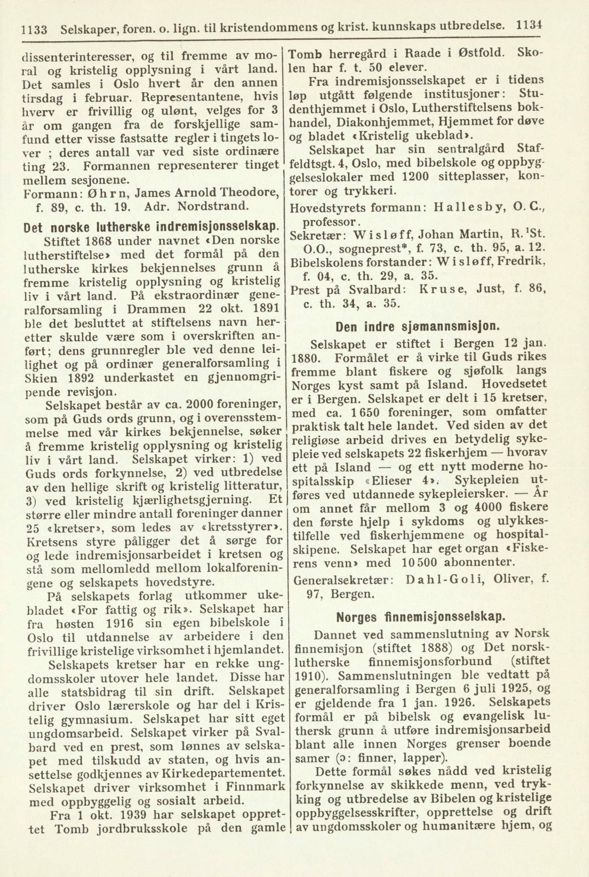 1133 Selskaper, foren. o. lign. til kristendommens og krist. kunnskaps utbredelse. 1134