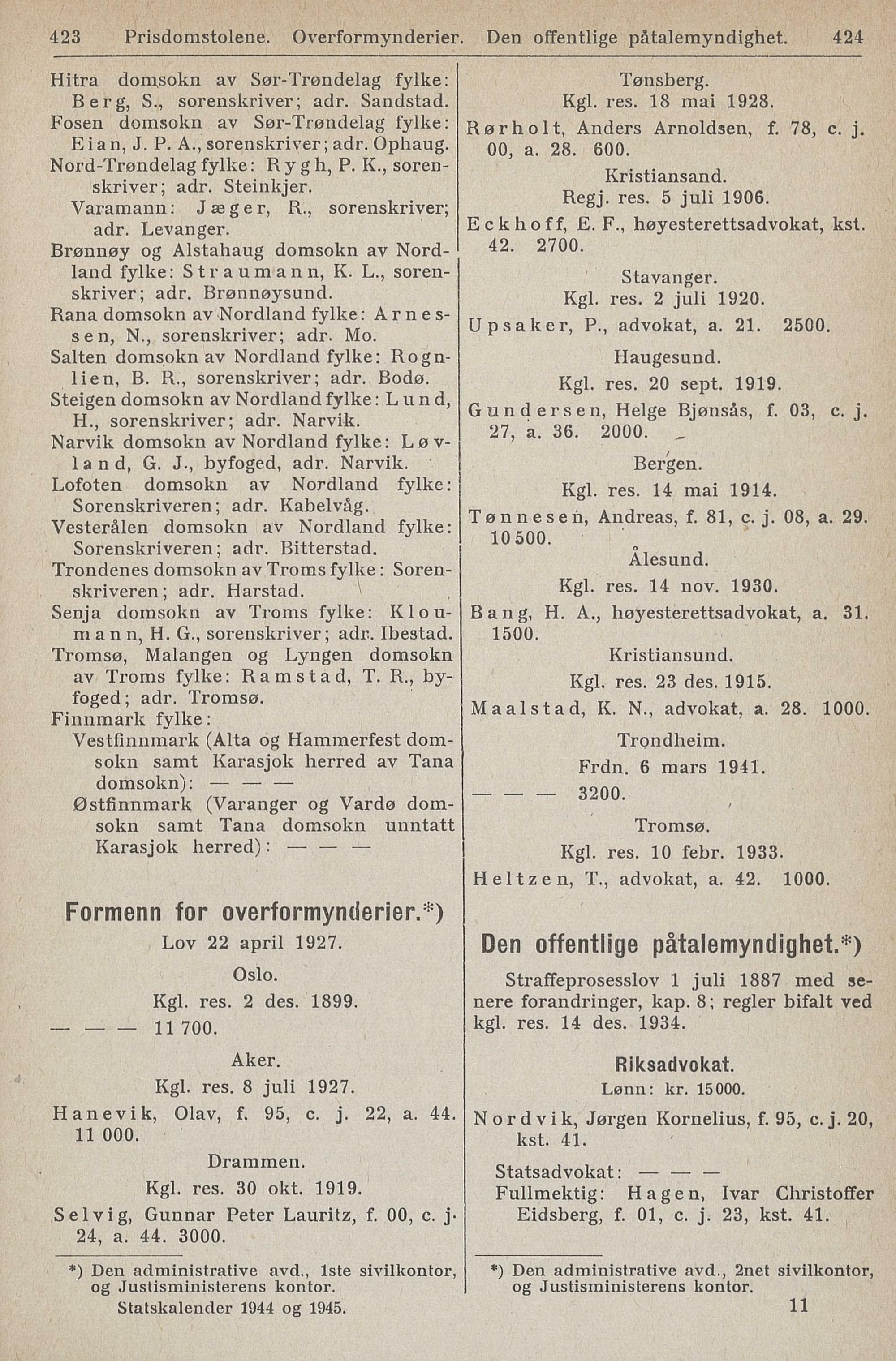 Statskalender 1944 og 1945.