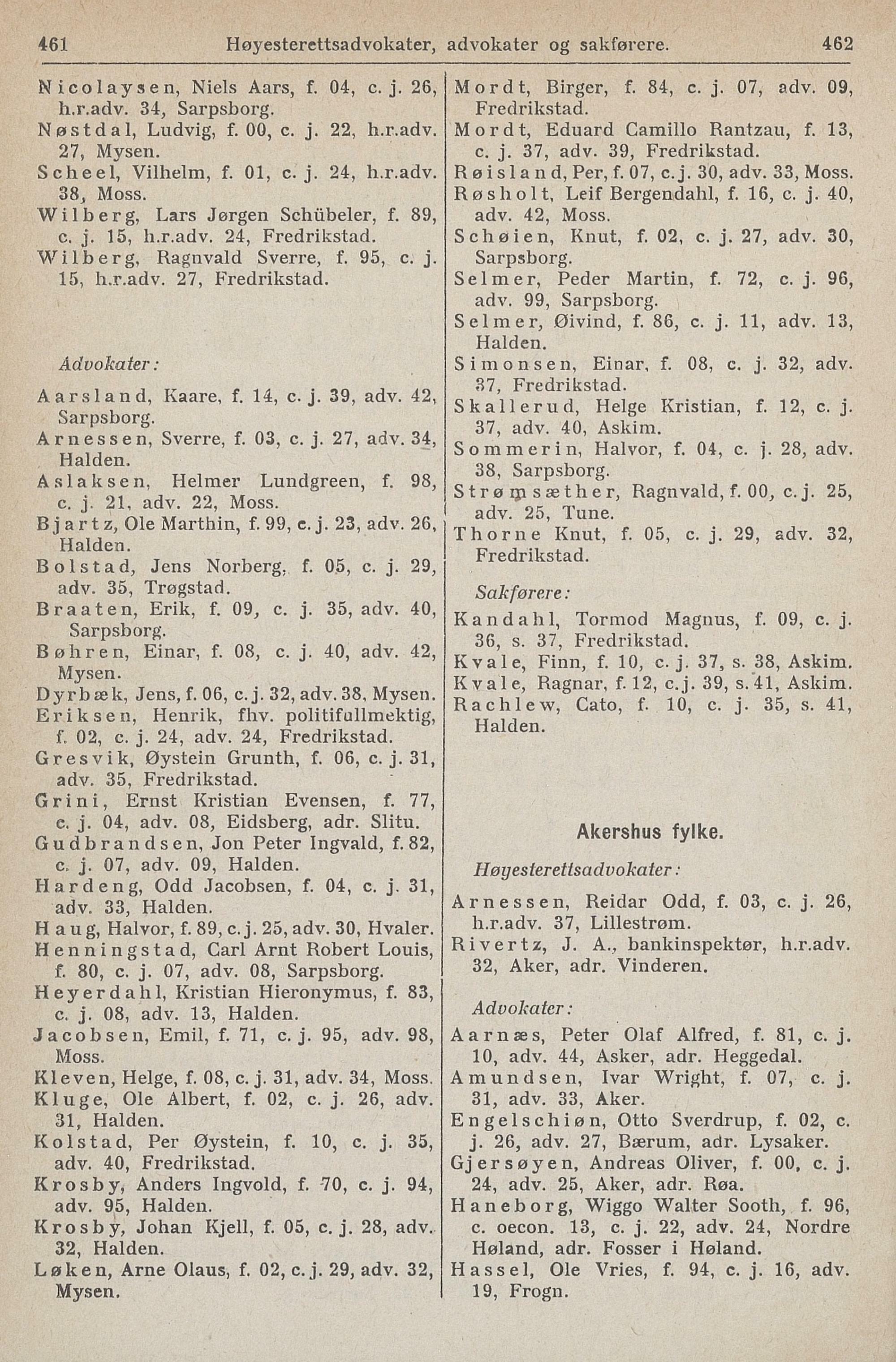 461 Høyesterettsadvokater, advokater og sakførere. 462