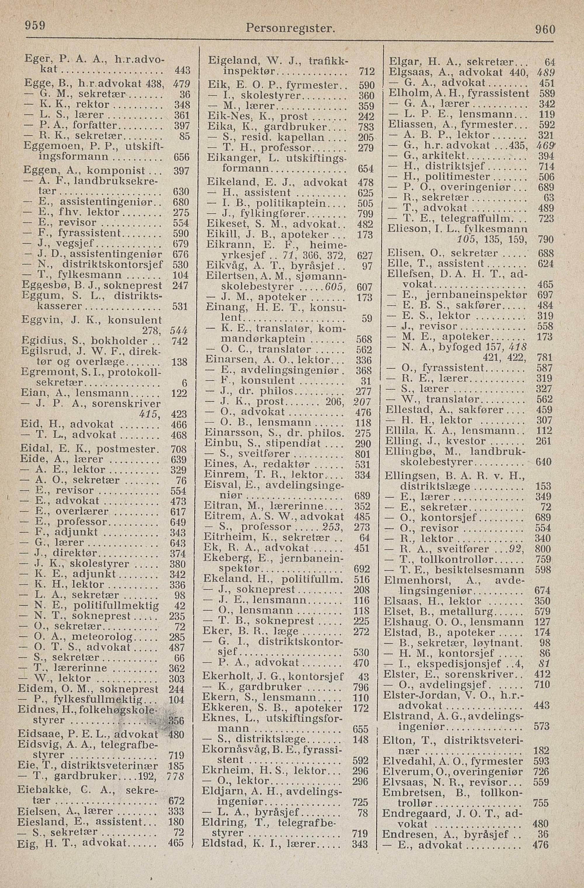 Eig, H. T., advokat...... 465 ) Eldstad, K. 1., lerer..... 343