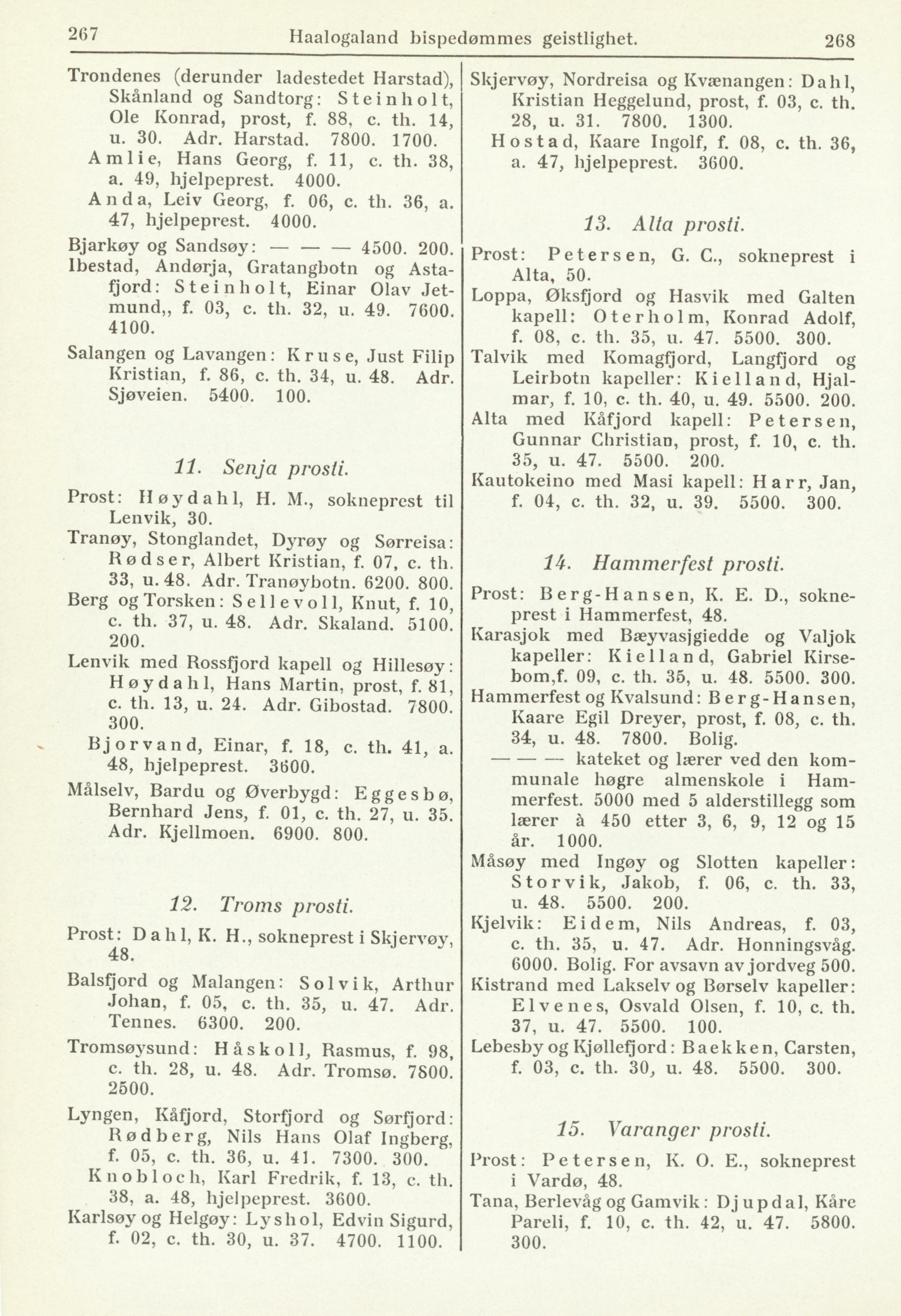 Haalogaland bispedømmes geistlighet. 268