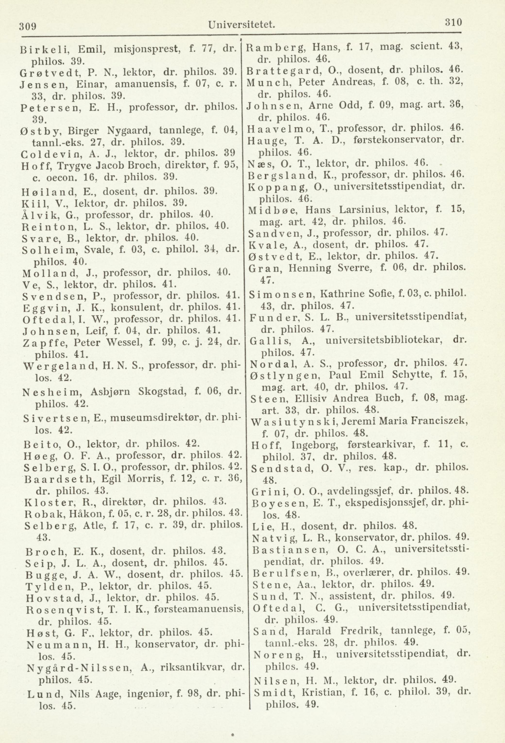 Selberg, S. 1. 0., professor, dr. philos. 42.