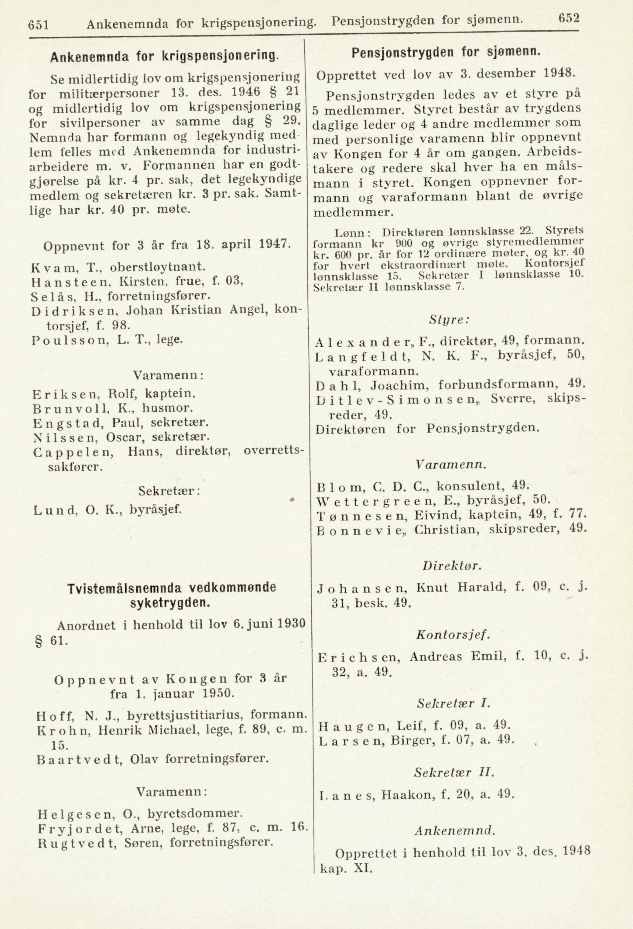 651 Ankenemnda for krigspensjonering. Pensjonstrygden for sjømenn.