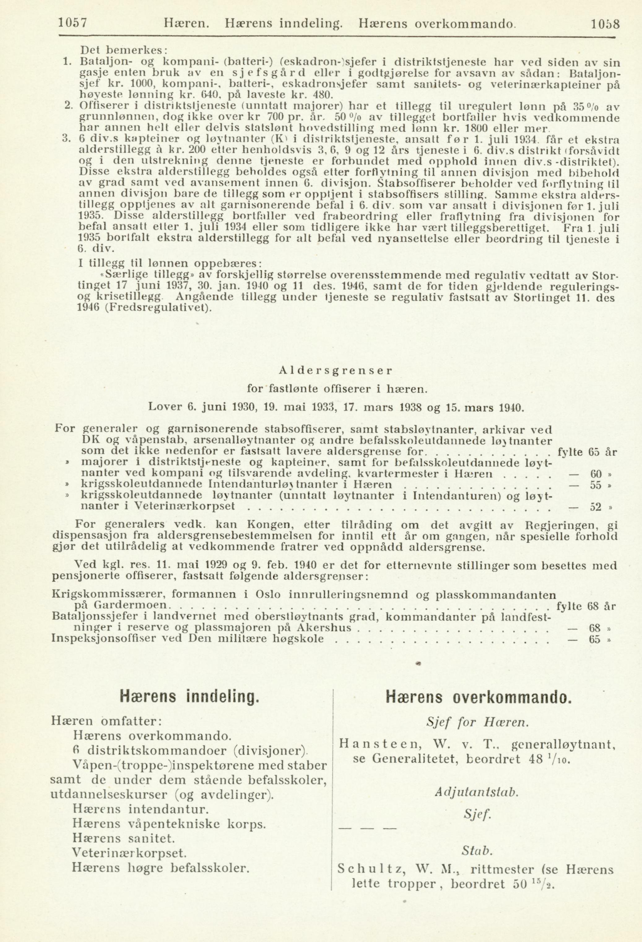 1057 Hæren. Hærens inndeling. Hærens overkommando 1058