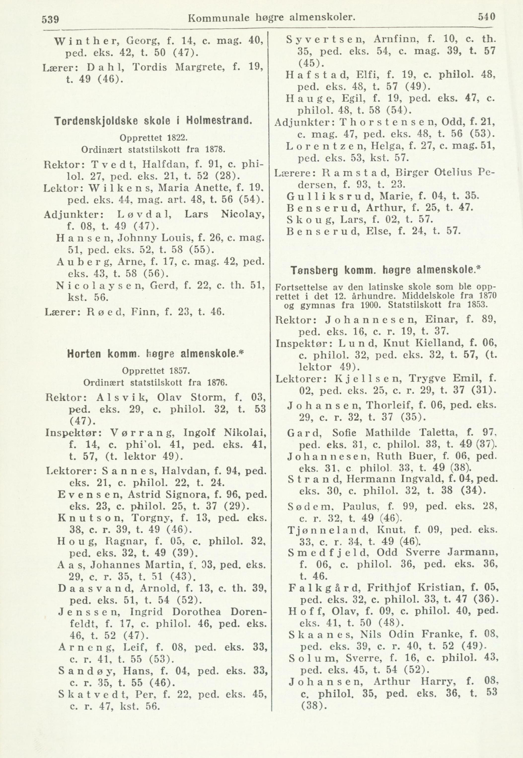 Rektor: Johannesen, Einar, f. 89;