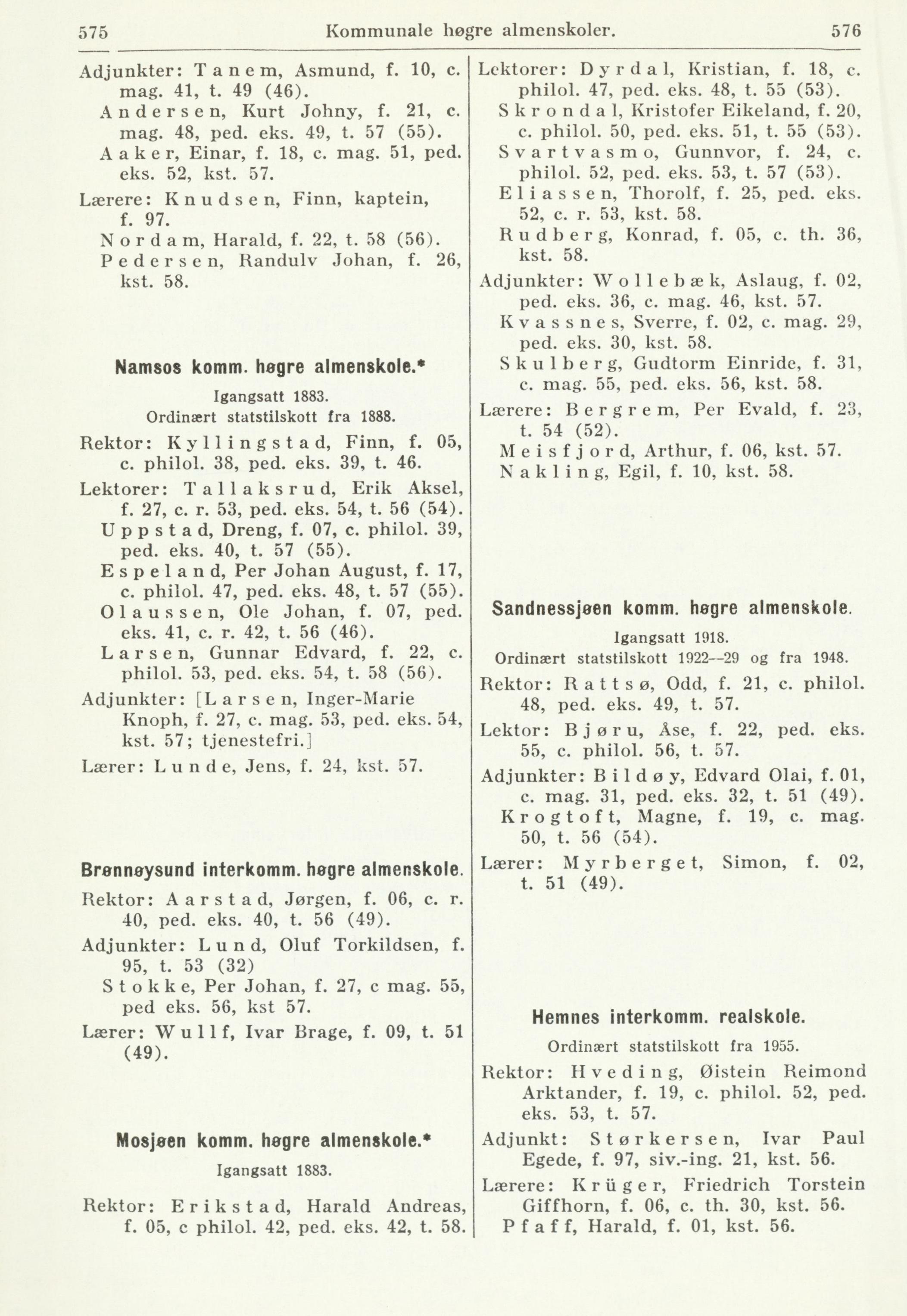575 Kommunale høgre almenskoler. 576