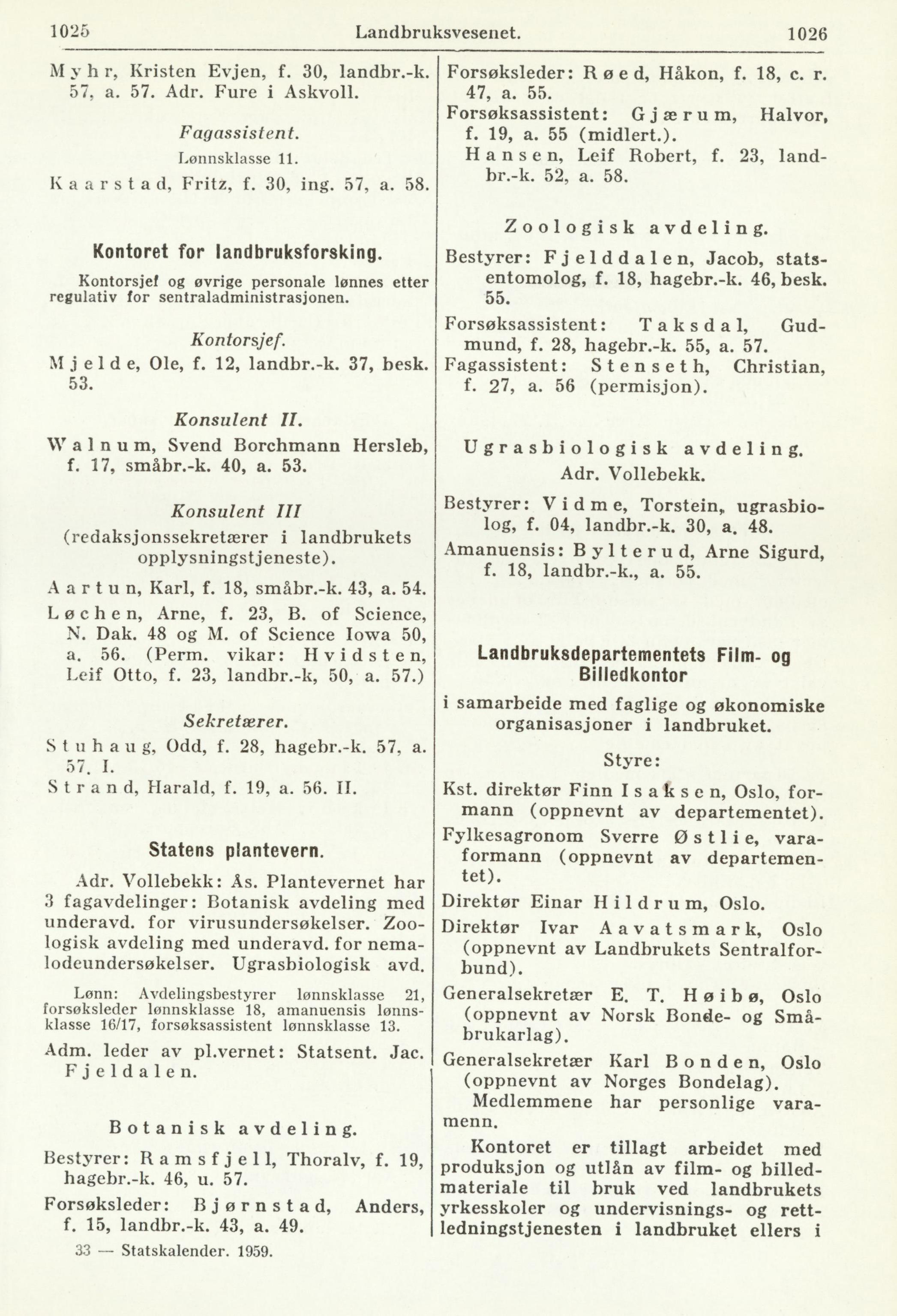 1025 Landbruksvesenet. 1026