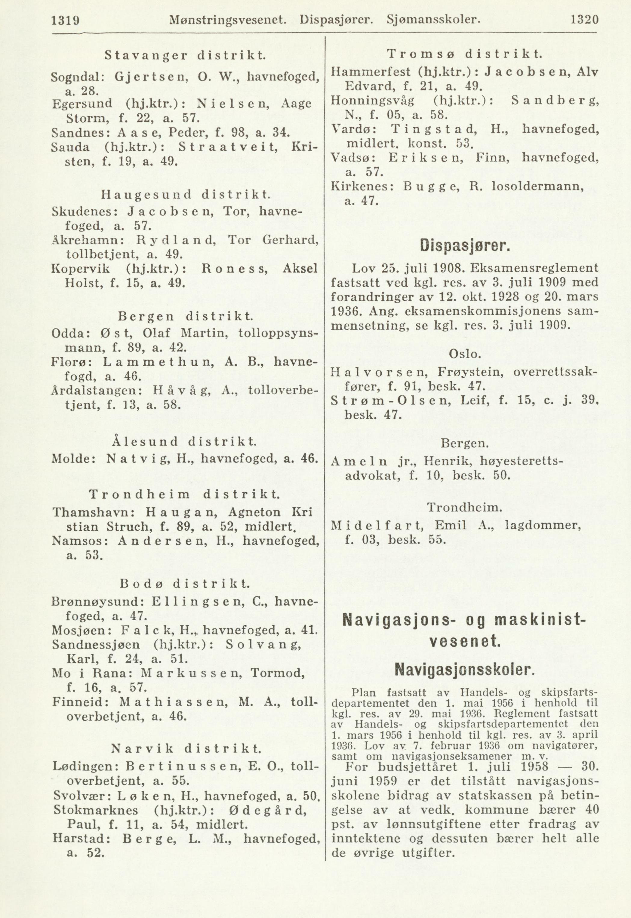 1319 Mønstringsvesenet. Dispasjører. Sjømansskoler. 1320