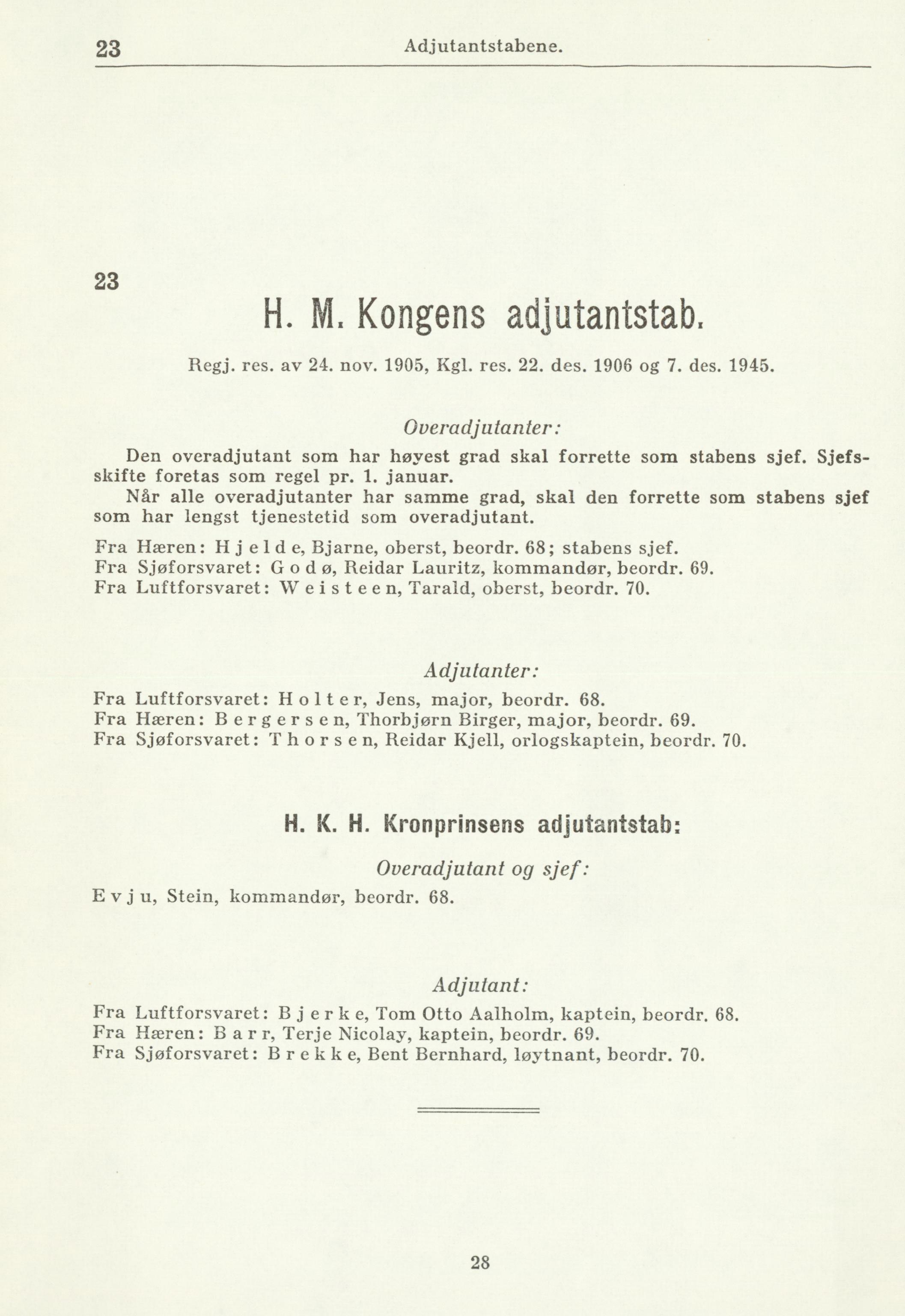 Fra Hæren: Hjelde, Bjarne, oberst, beordr. 68; stabens sjef.