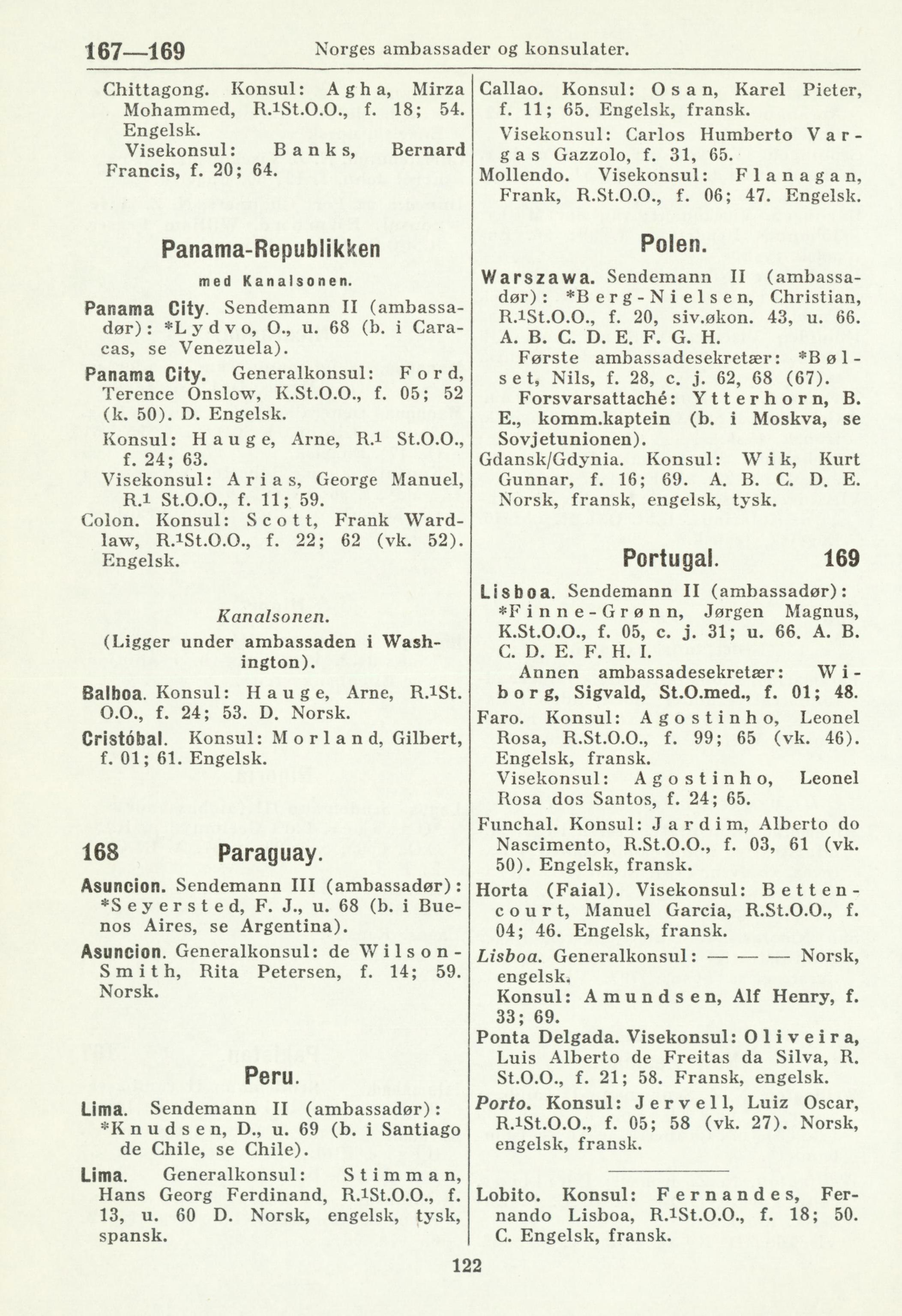 167—169 Norges ambassader og konsulater.