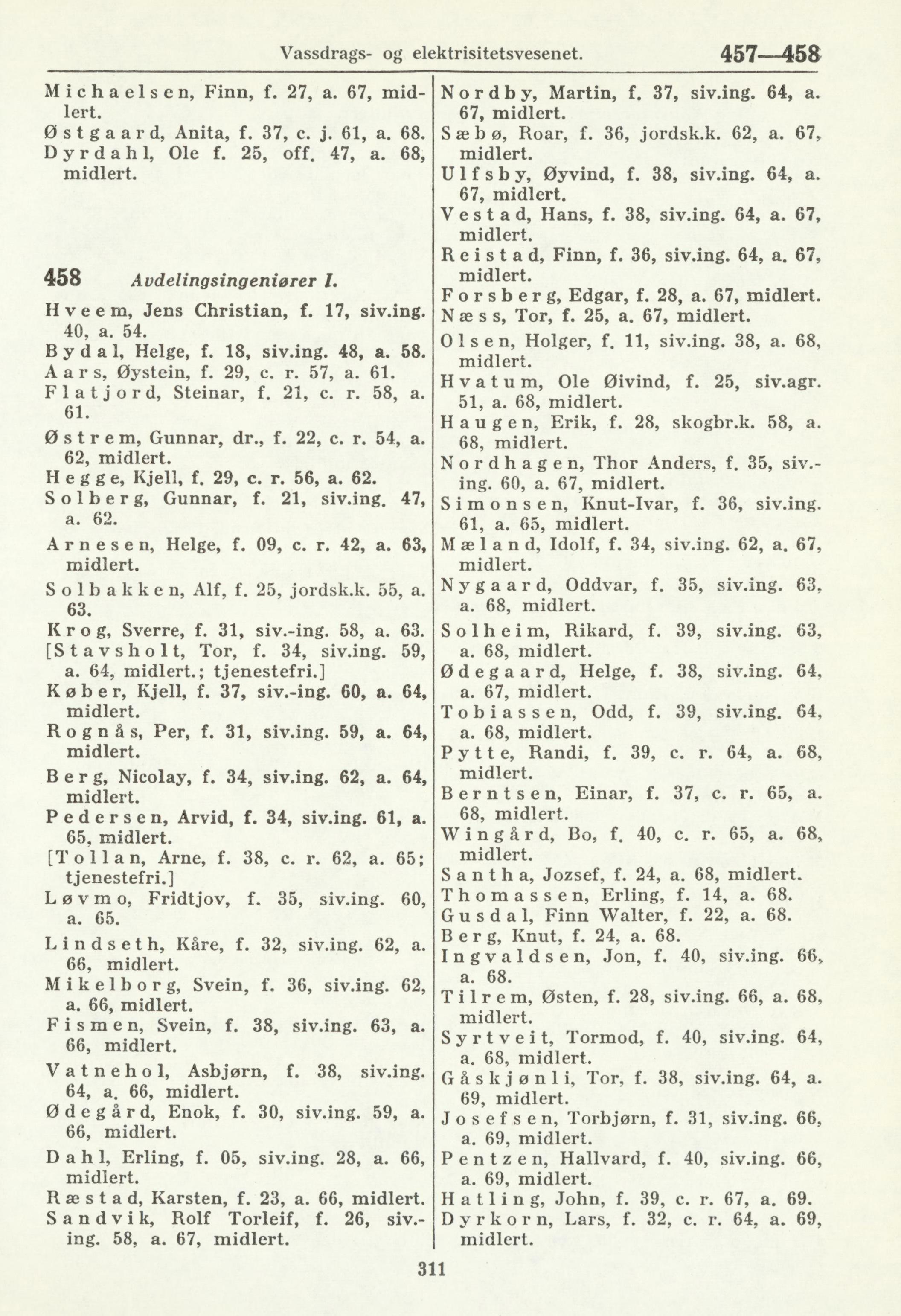 458 Avdelingsingentiører I.