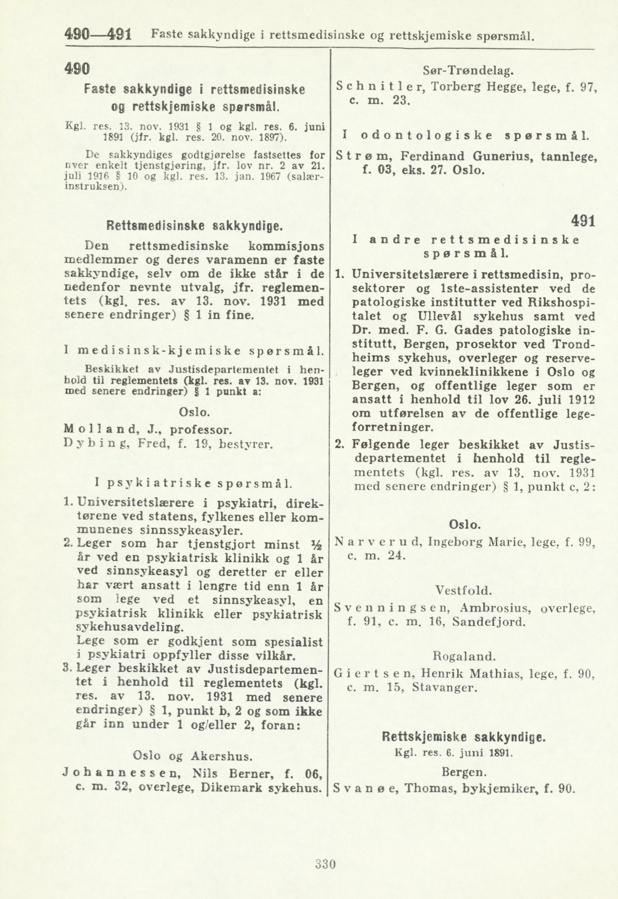 490—491 Faste sakkyndige i rettsmedisinske og rettskjemiske spørsmål.