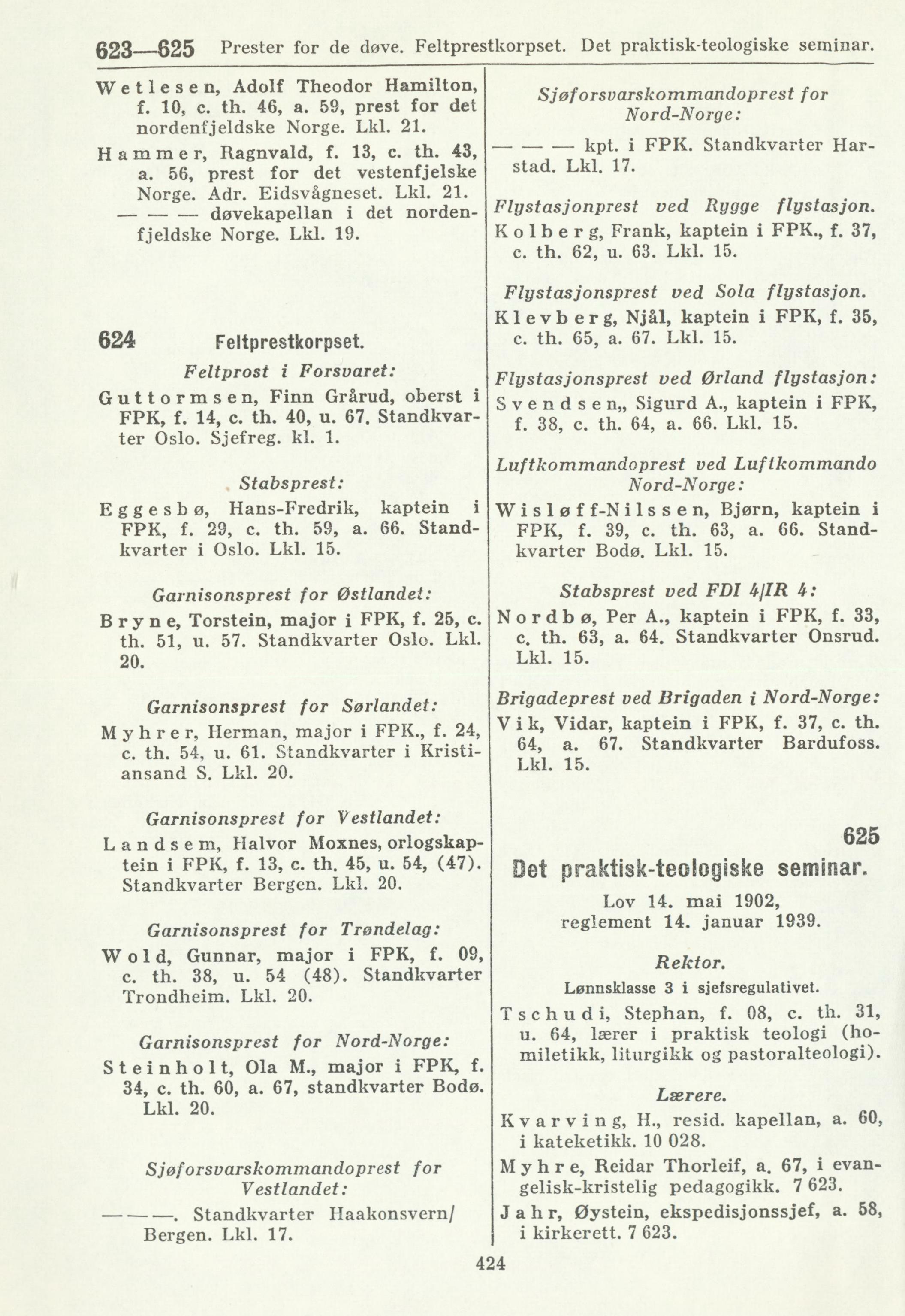 623—625 Prester for de døve. Feltprestkorpset. Det praktisk-teologiske seminar.