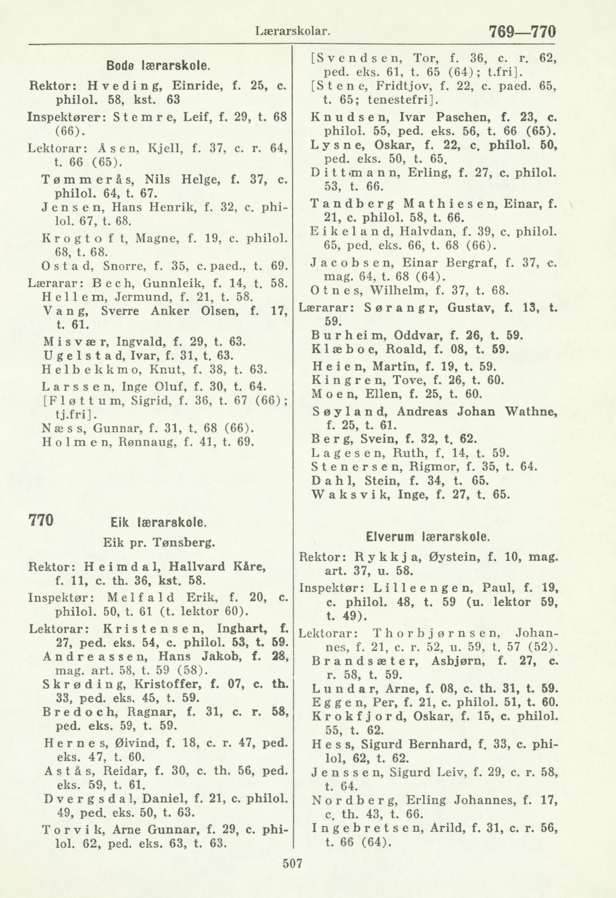 Rektor: Rykkja, Øystein, f. 10, mag.