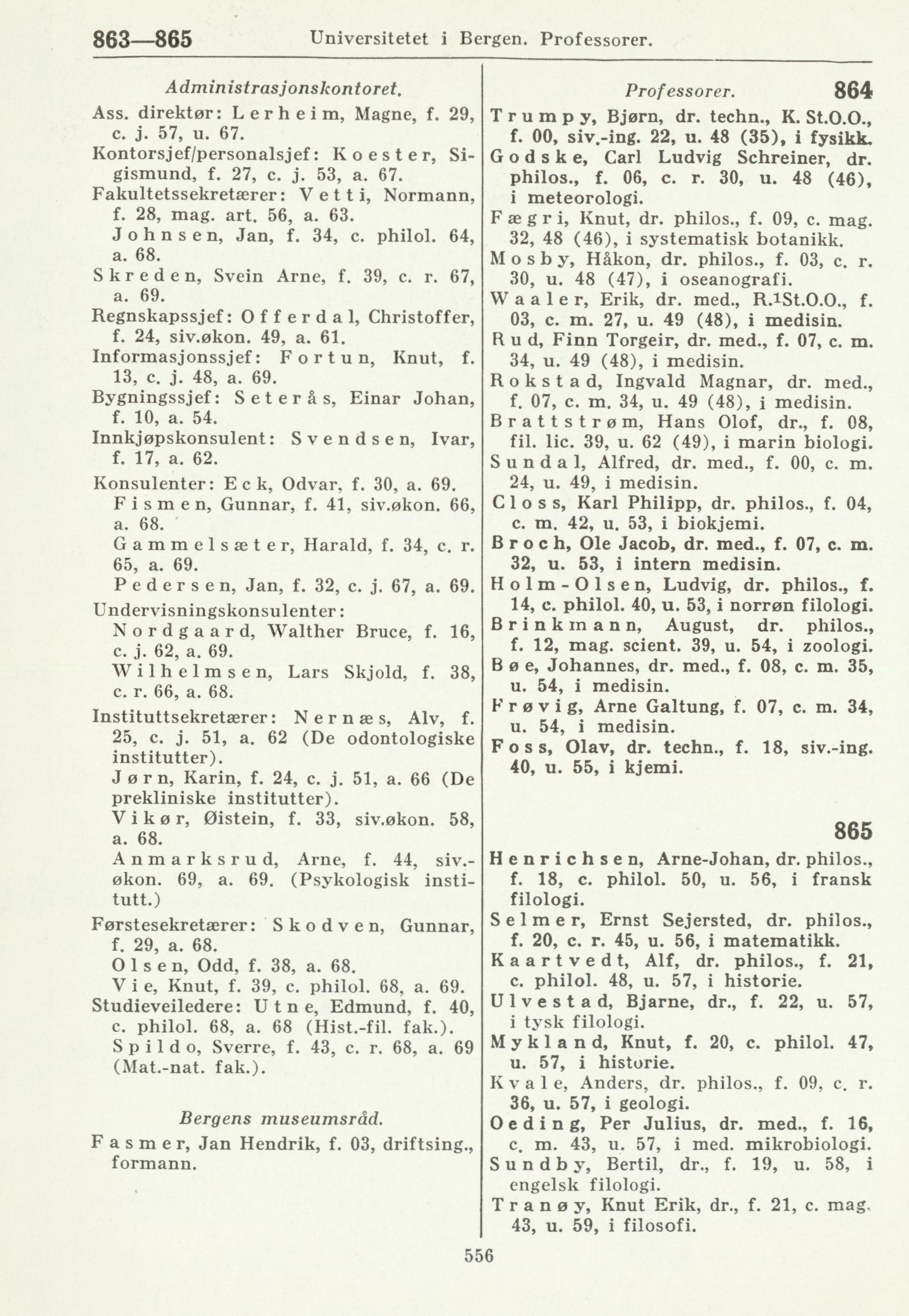 Universitetet i Bergen. Professorer.