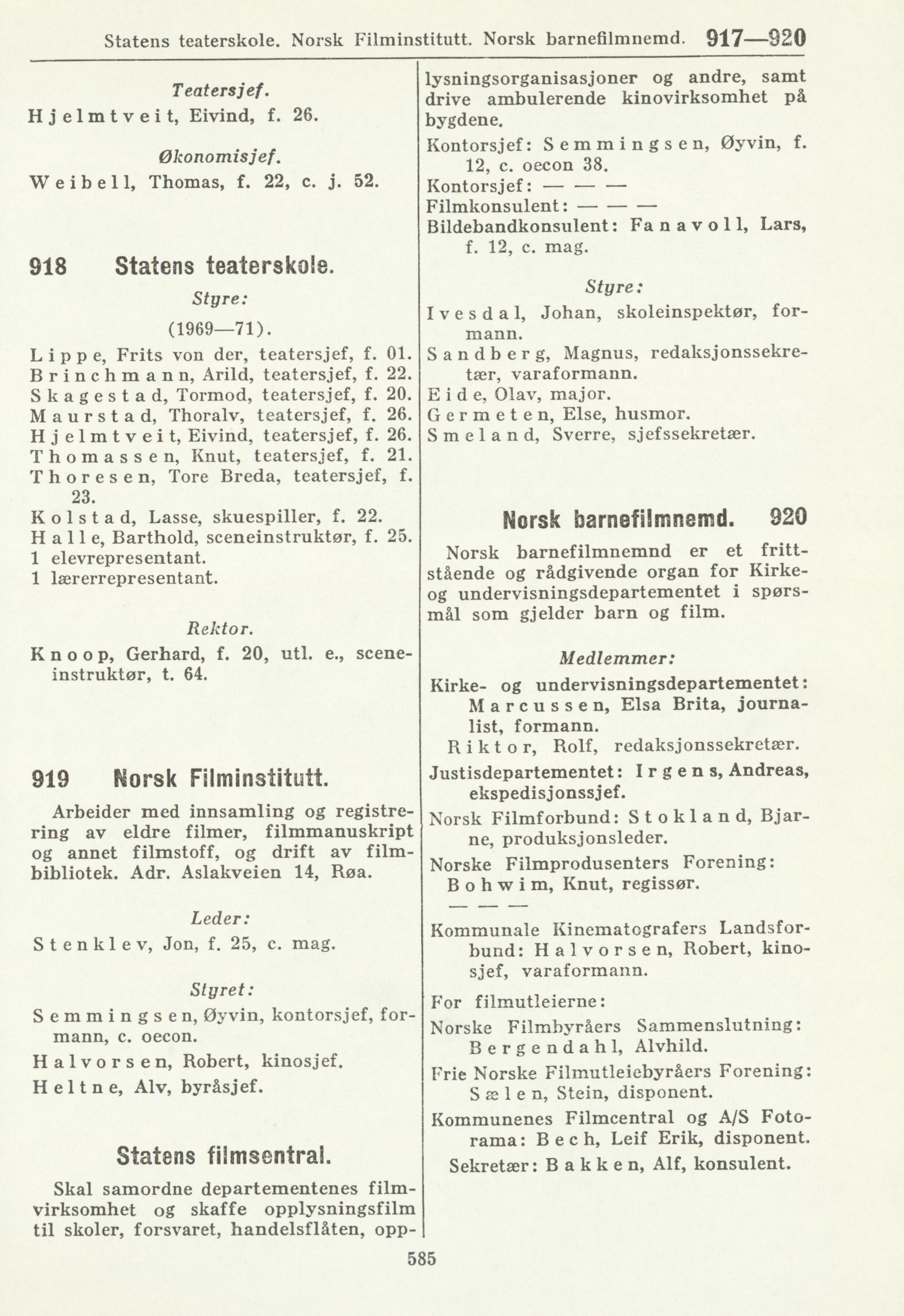 Statens teaterskole. Norsk Filminstitutt. Norsk barnefilmnemd. 917—28920