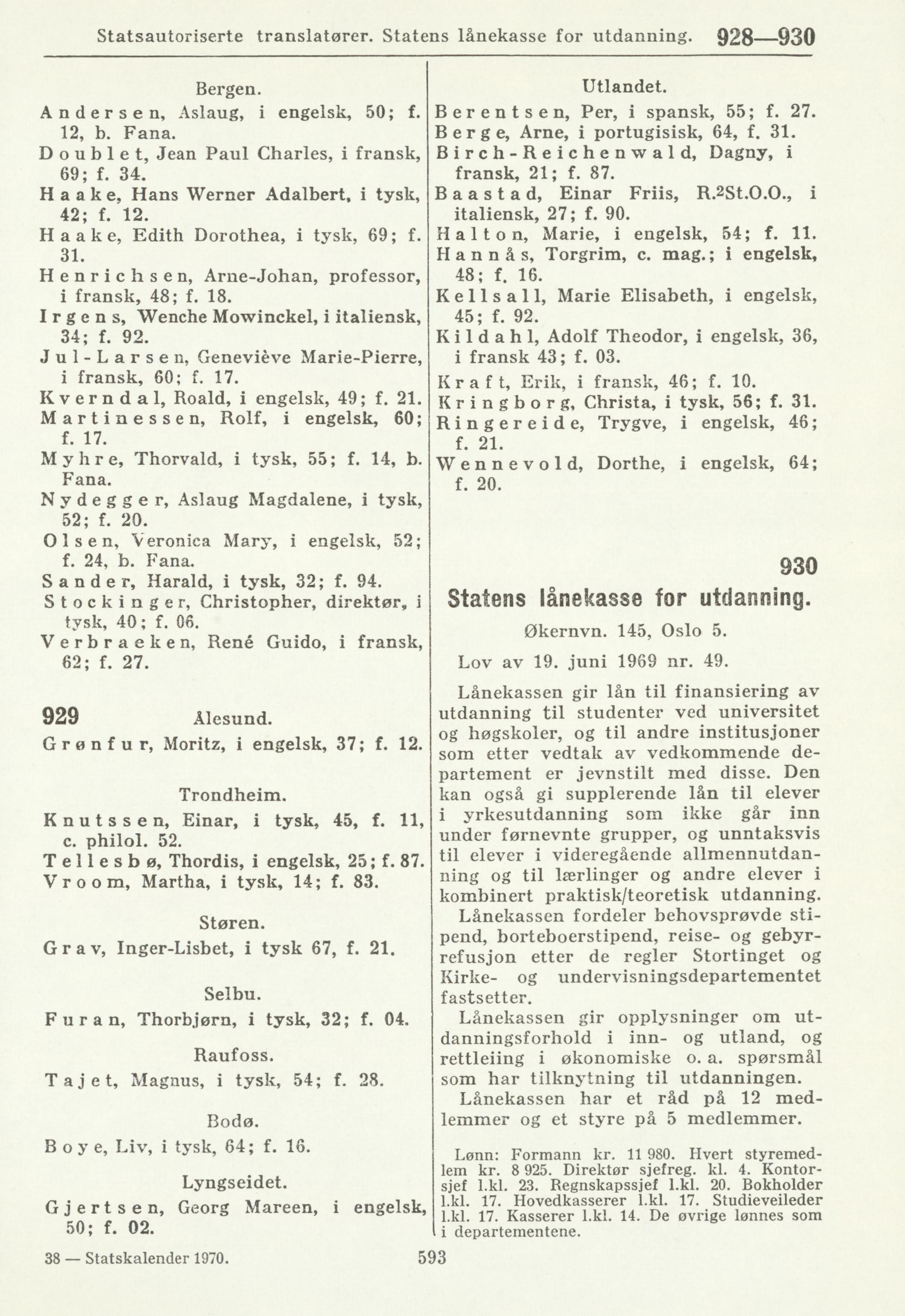 Statsautoriserte translatører. Statens lånekasse for utdanning. 928—930
