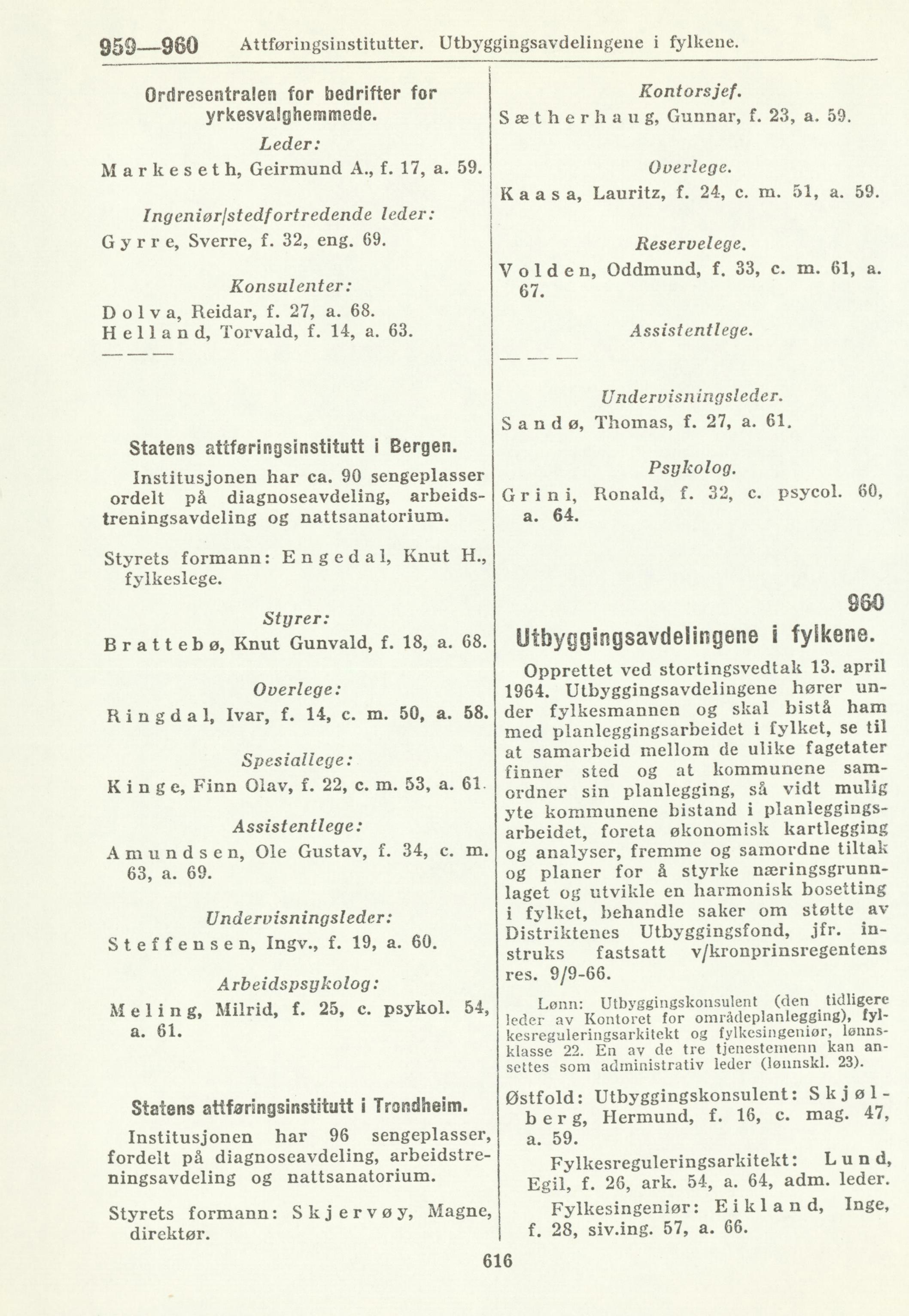 1964. Utbyggingsavdelingene hører un