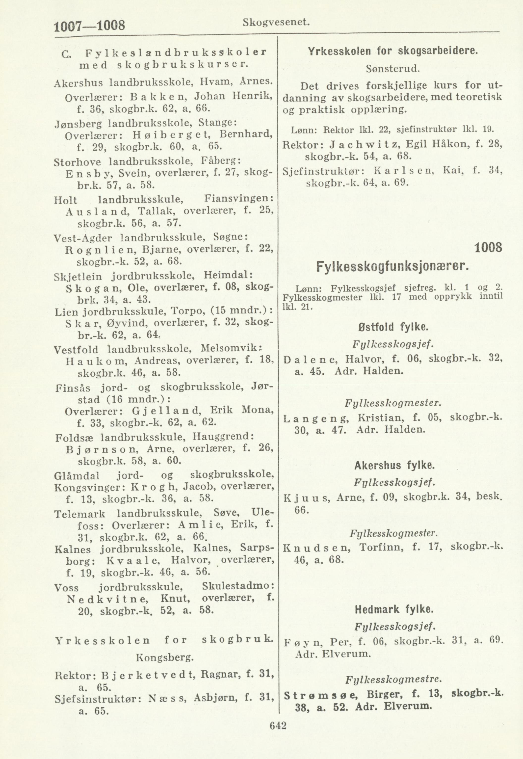 Ensby, Svein, overlærer, f. 27, skog- Sjefinstruktør: Karlsen, Kai, f. 34,