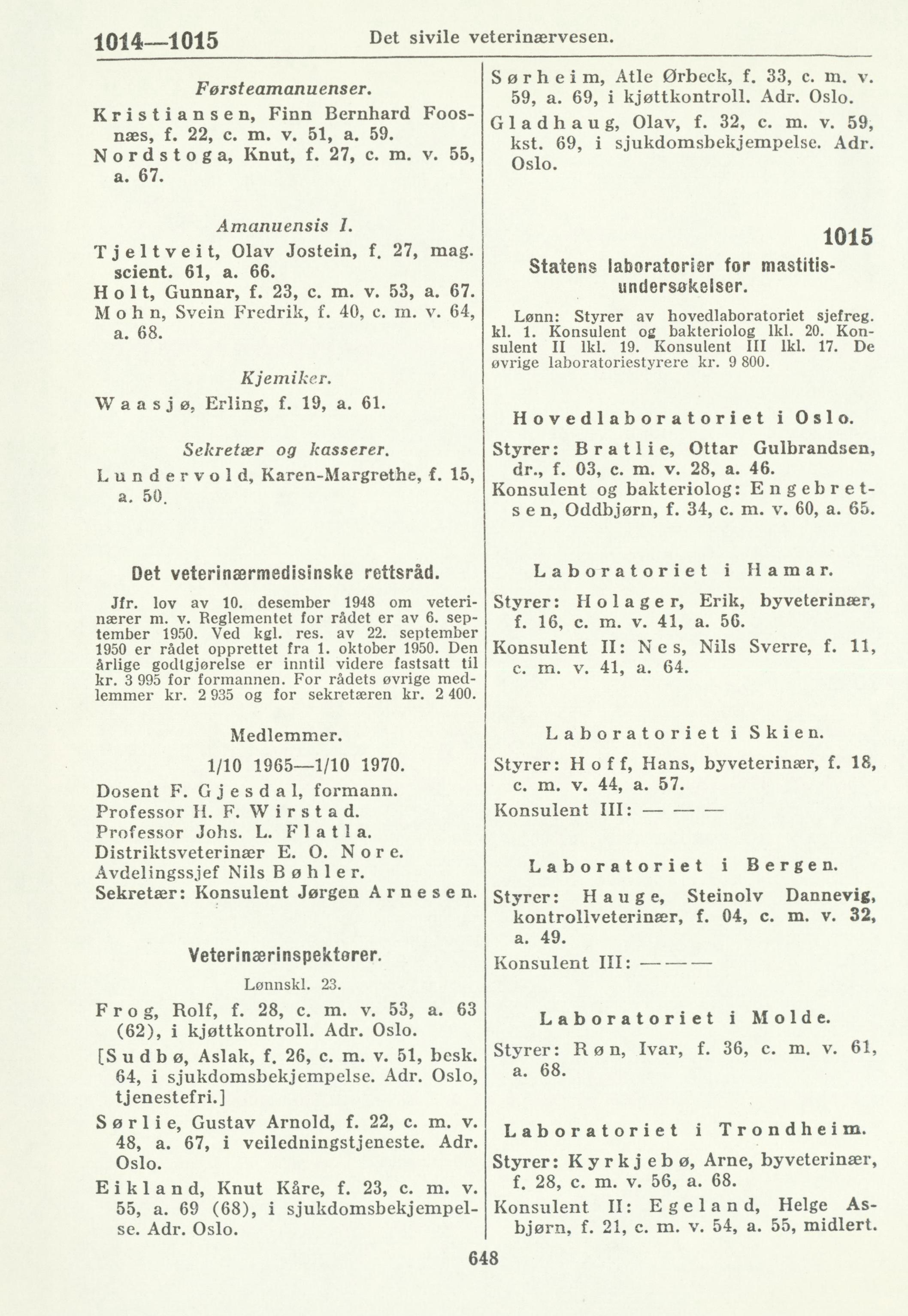 kl. 1. Konsulent og bakteriolog 1kl. 20. Kon