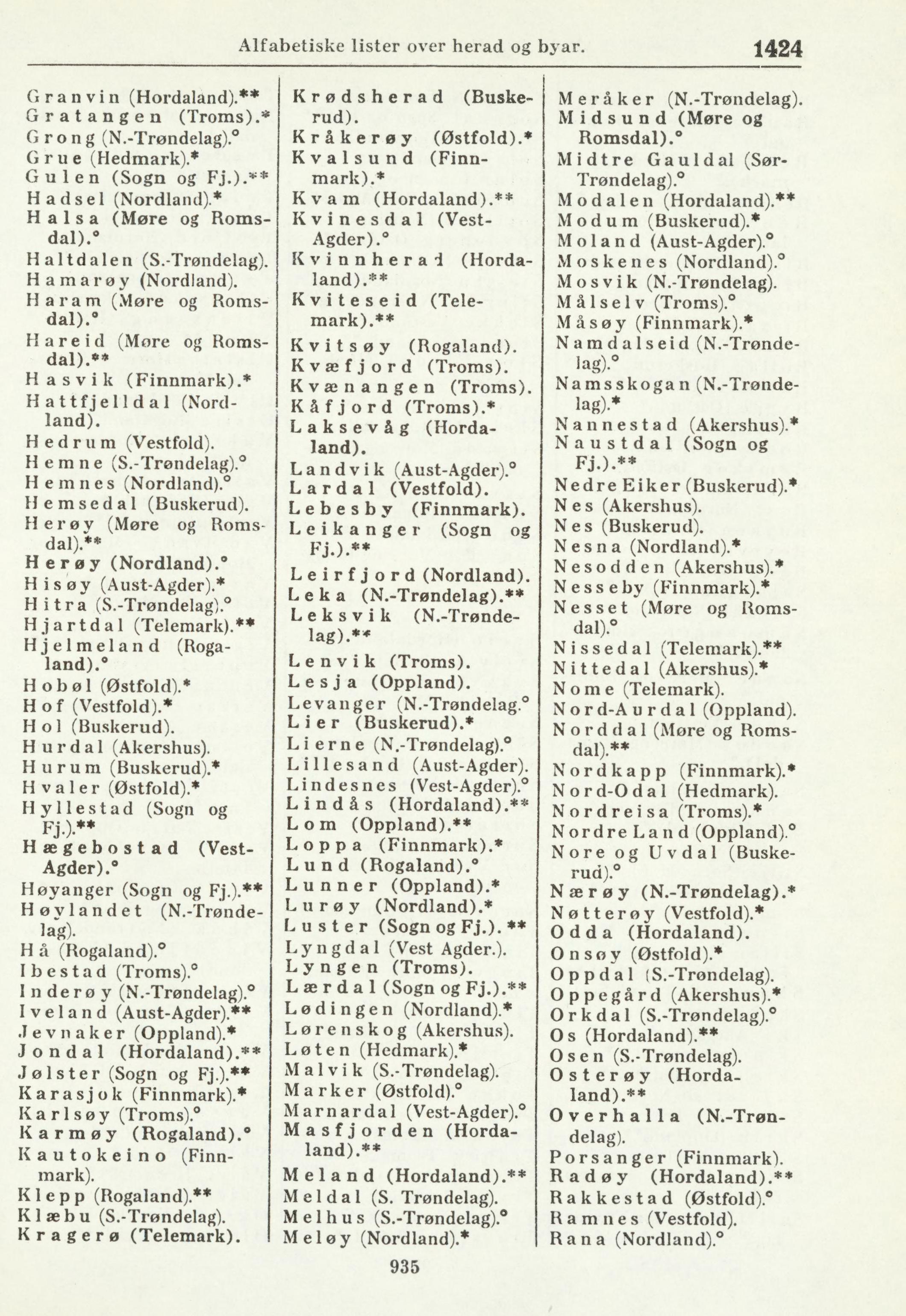 Alfabetiske lister over herad og byar.