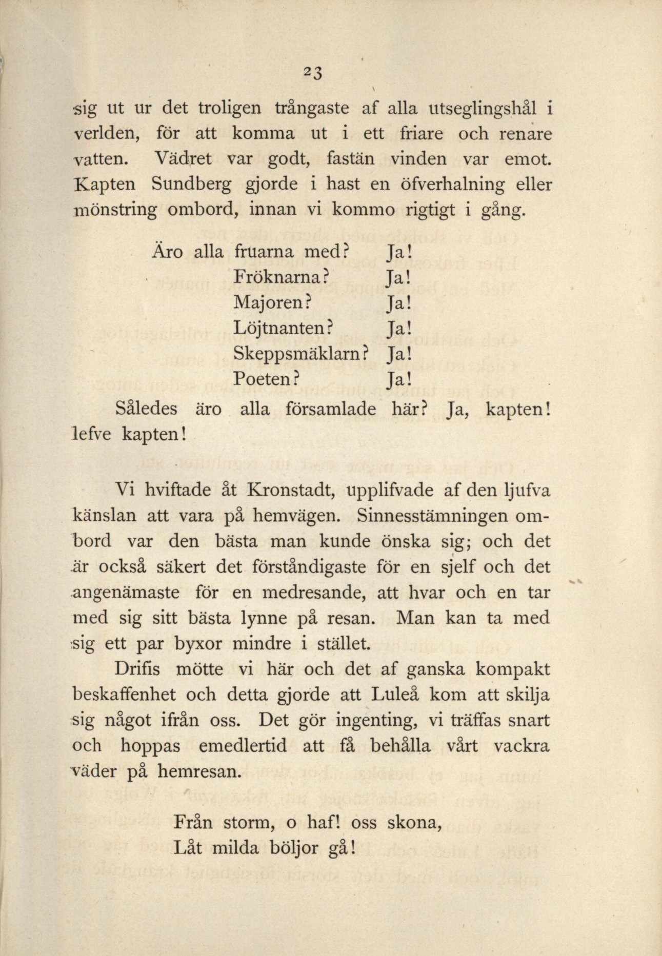 Från storm, o haf! oss skona, |