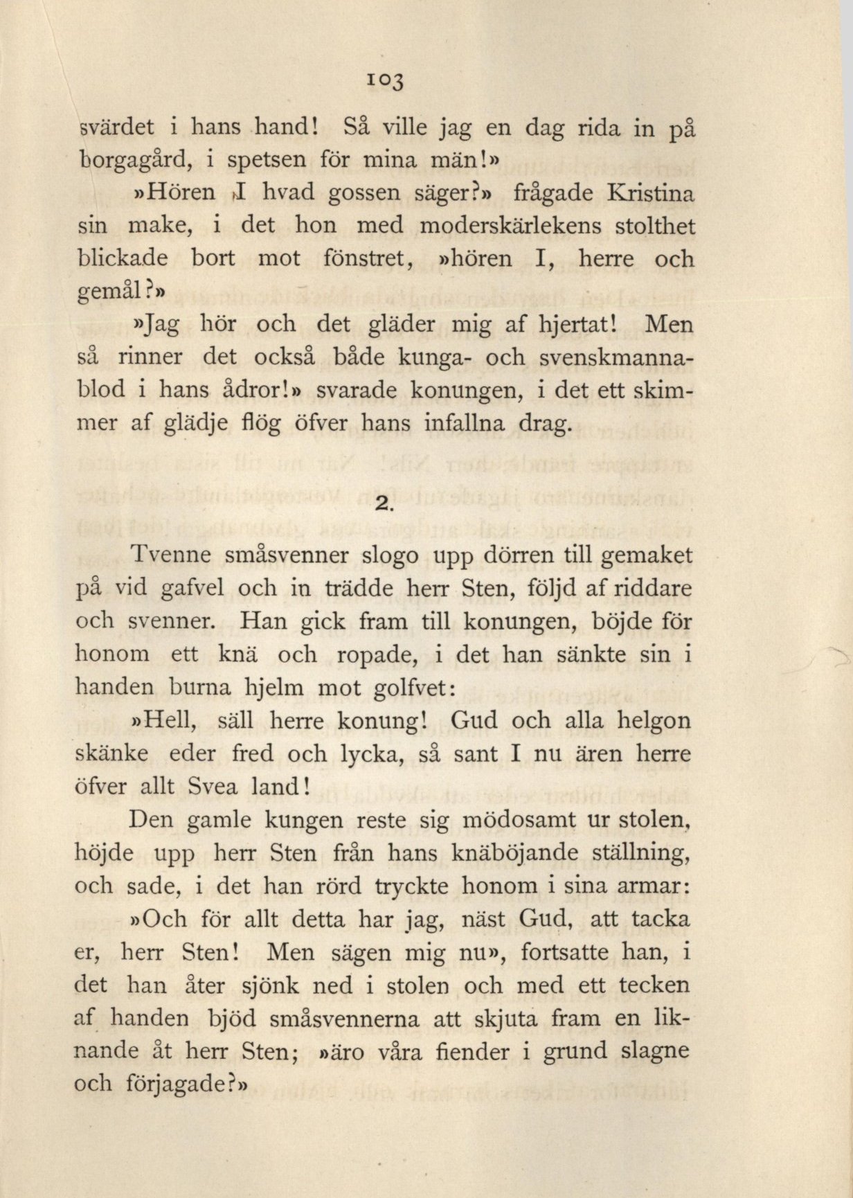svenskmanna-blod i hans ådror!» svarade konungen, i det ett