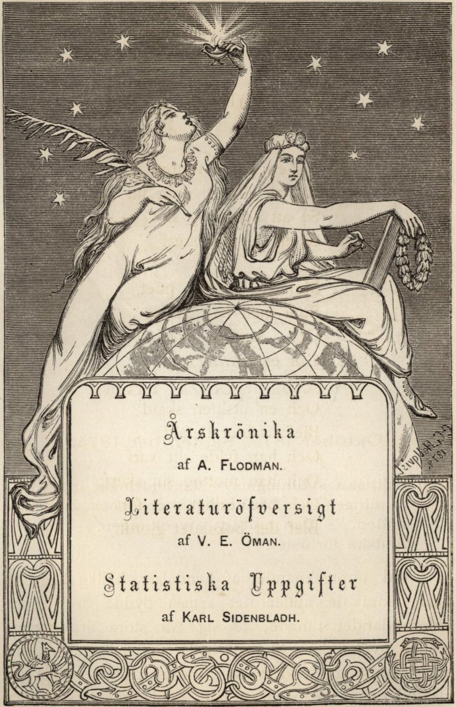 C. G. Hellqvist, 1874, ill. Årskrönika af A. Flodman. Literaturöfversigt af V. E. Öman. Statistiska Uppgifter af Karl Sidenbladh. |