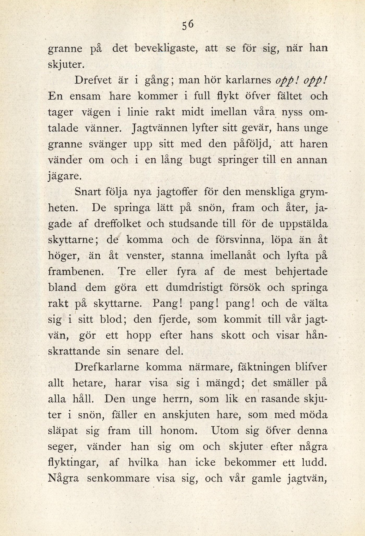 En ensam hare kommer i full flykt öfver fältet och