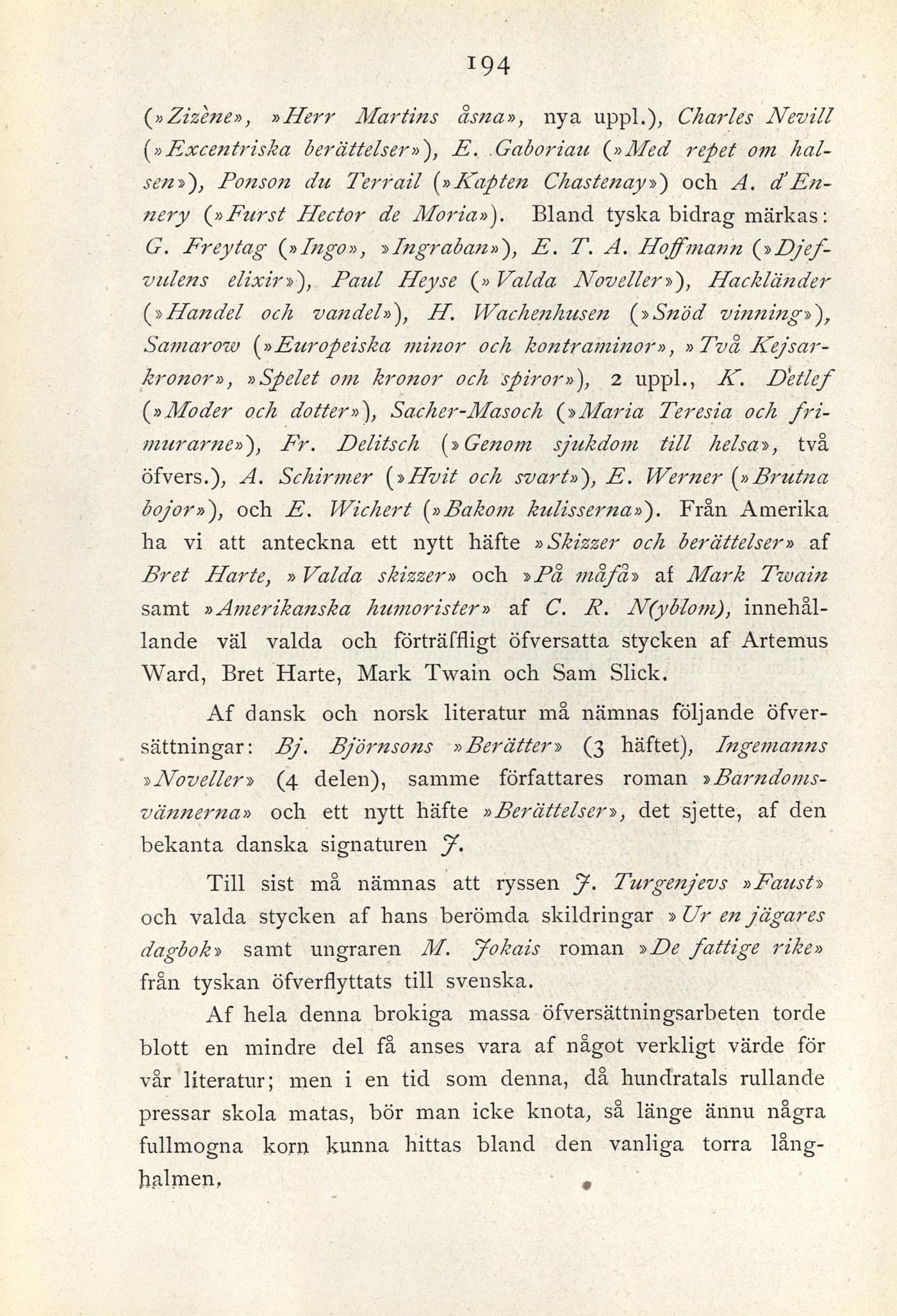 halsen»’), Ponson du Terrail (»Kapten Chastenay») och A.