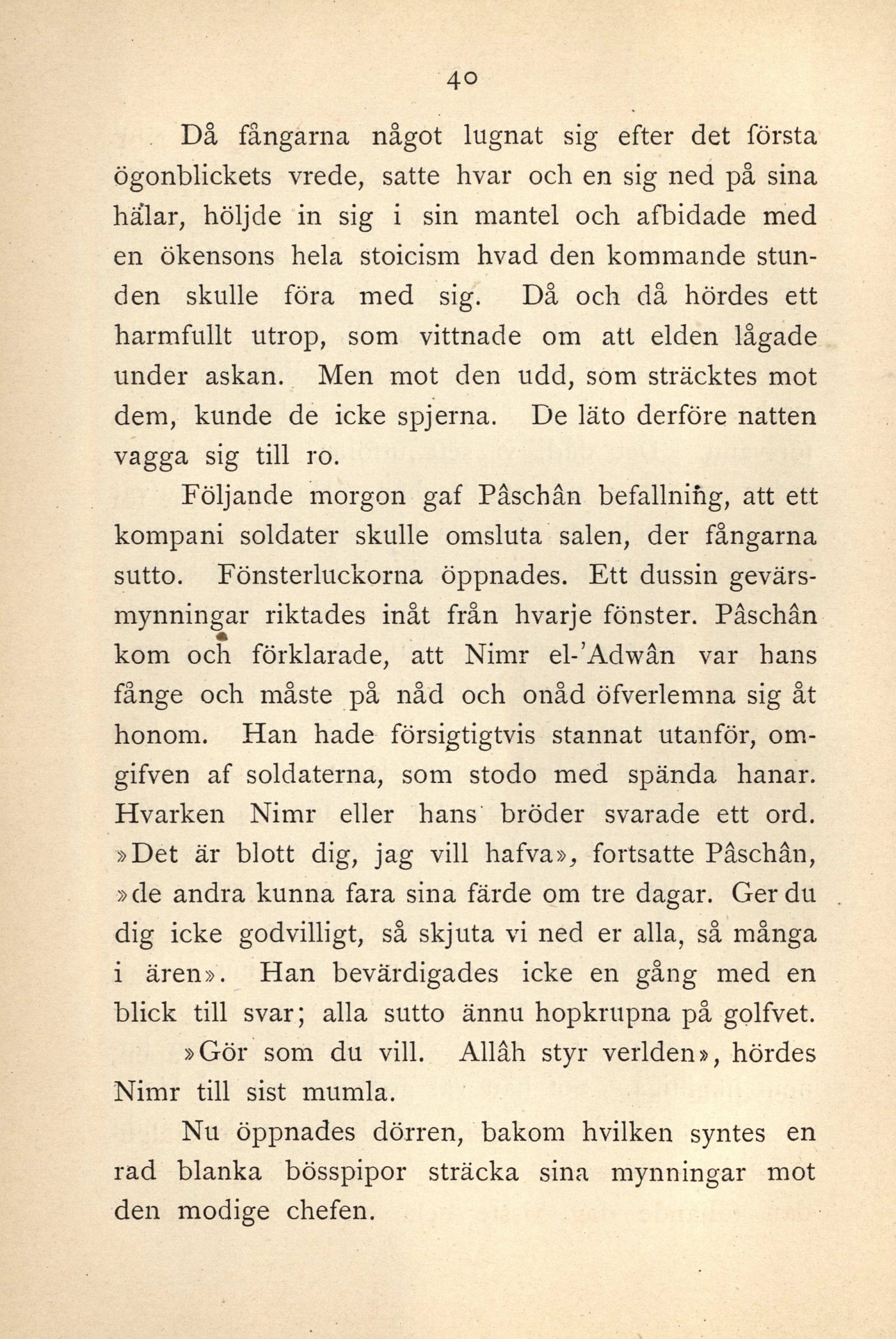 gevärs-mynningar riktades inåt från hvarje fönster. Påschån