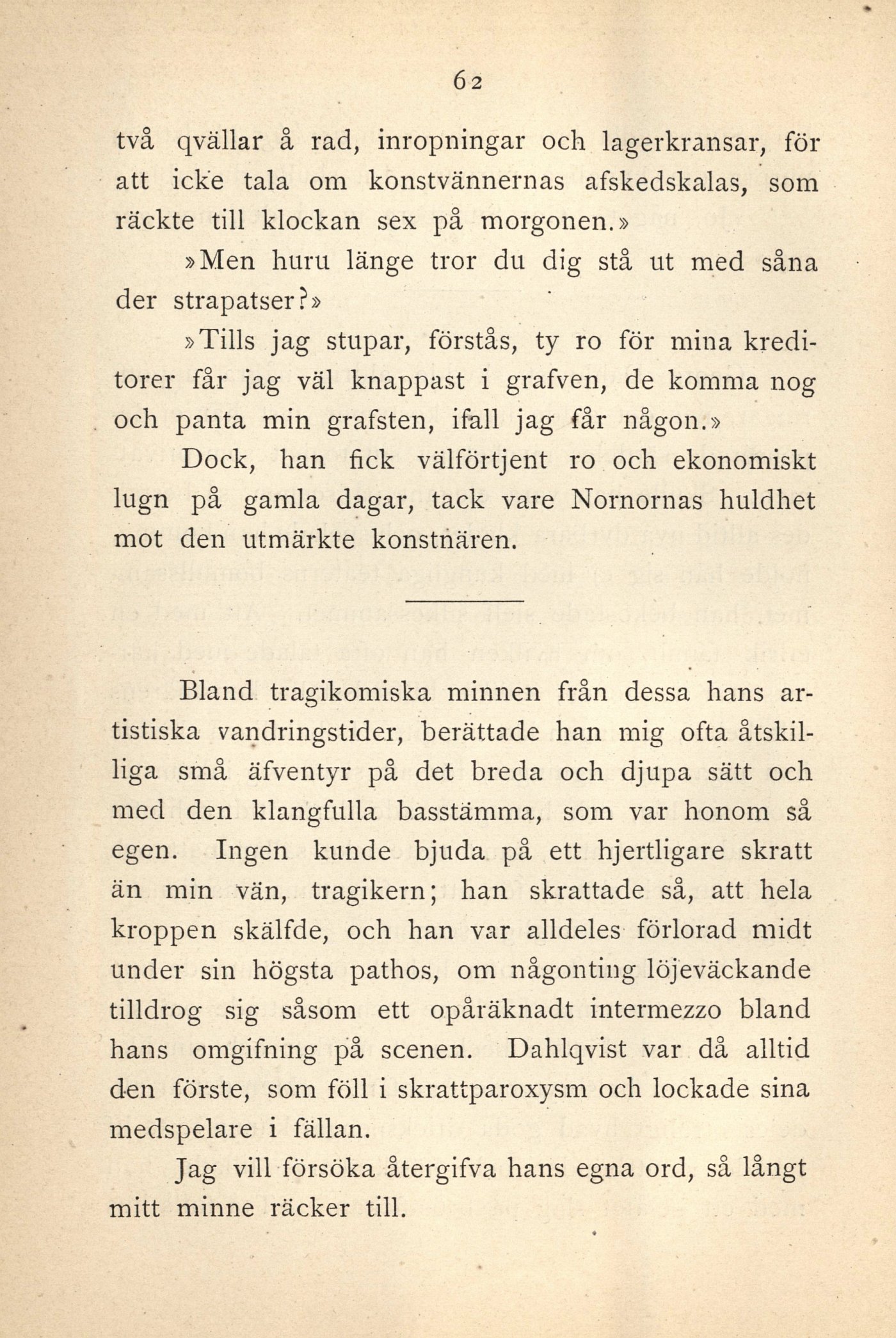 hans omgifning på scenen. Dahlqvist var då alltid