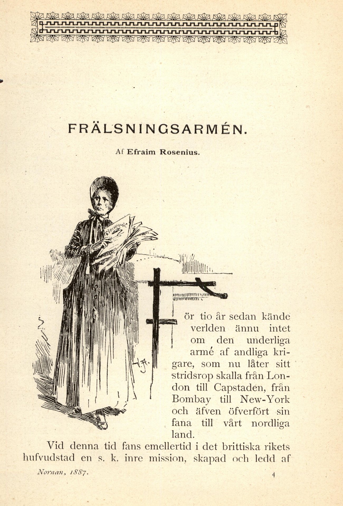 Full resolution (JPEG) - On this page / på denna sida - Frälsningsarmén. Af Efraim Rosenius. Med illustration af V. Andrén